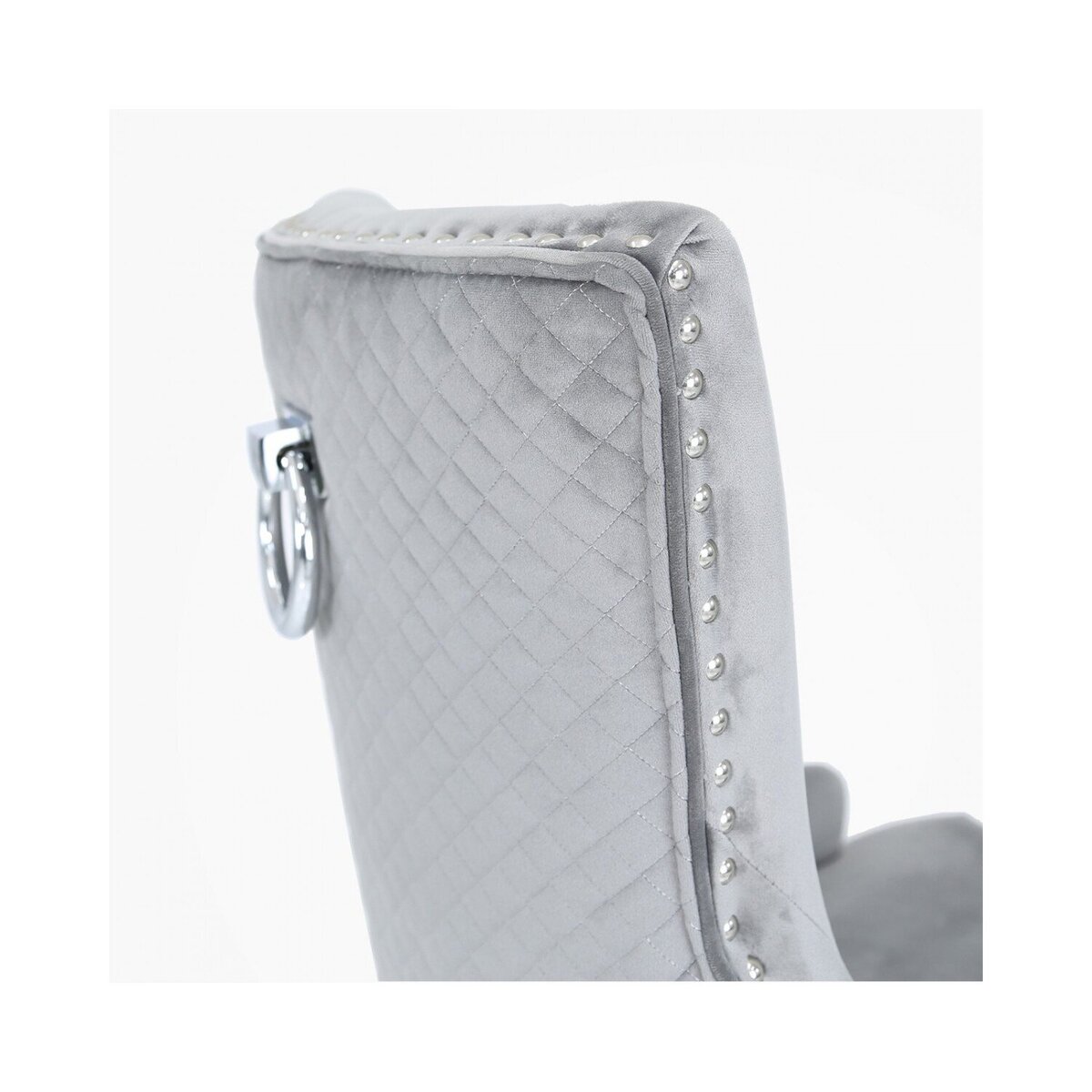 Deco Home Grey Velvet Dining Chair With Studded Trims And Ring Knocker Back
