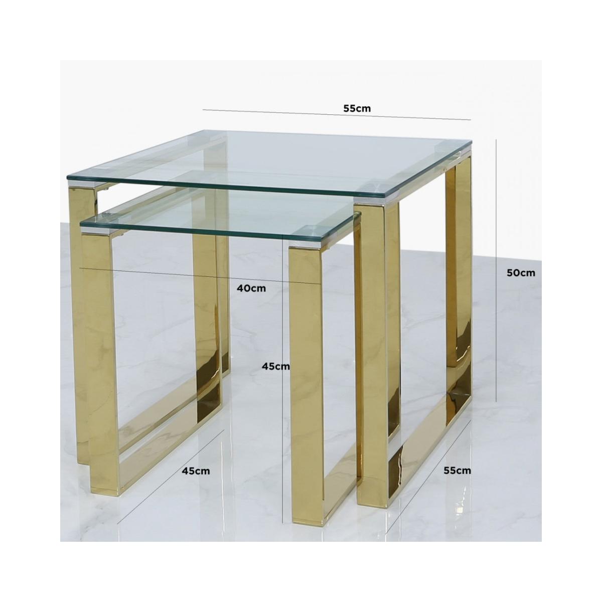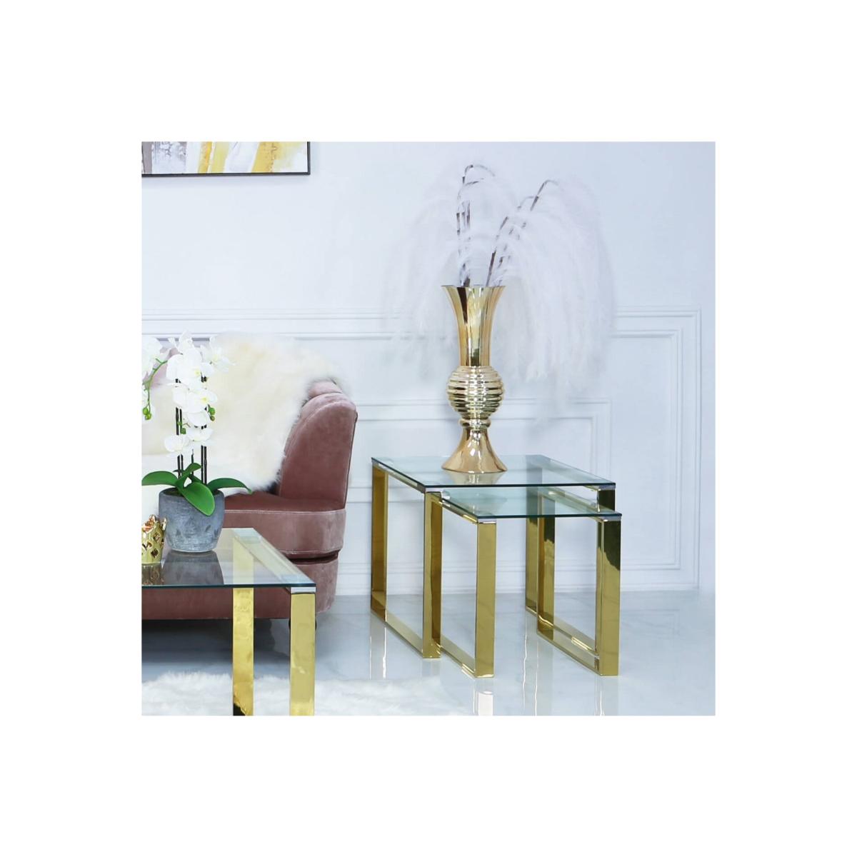 Deco Home Harper Nest Of 2 Gold Steel And Clear Glass Tables