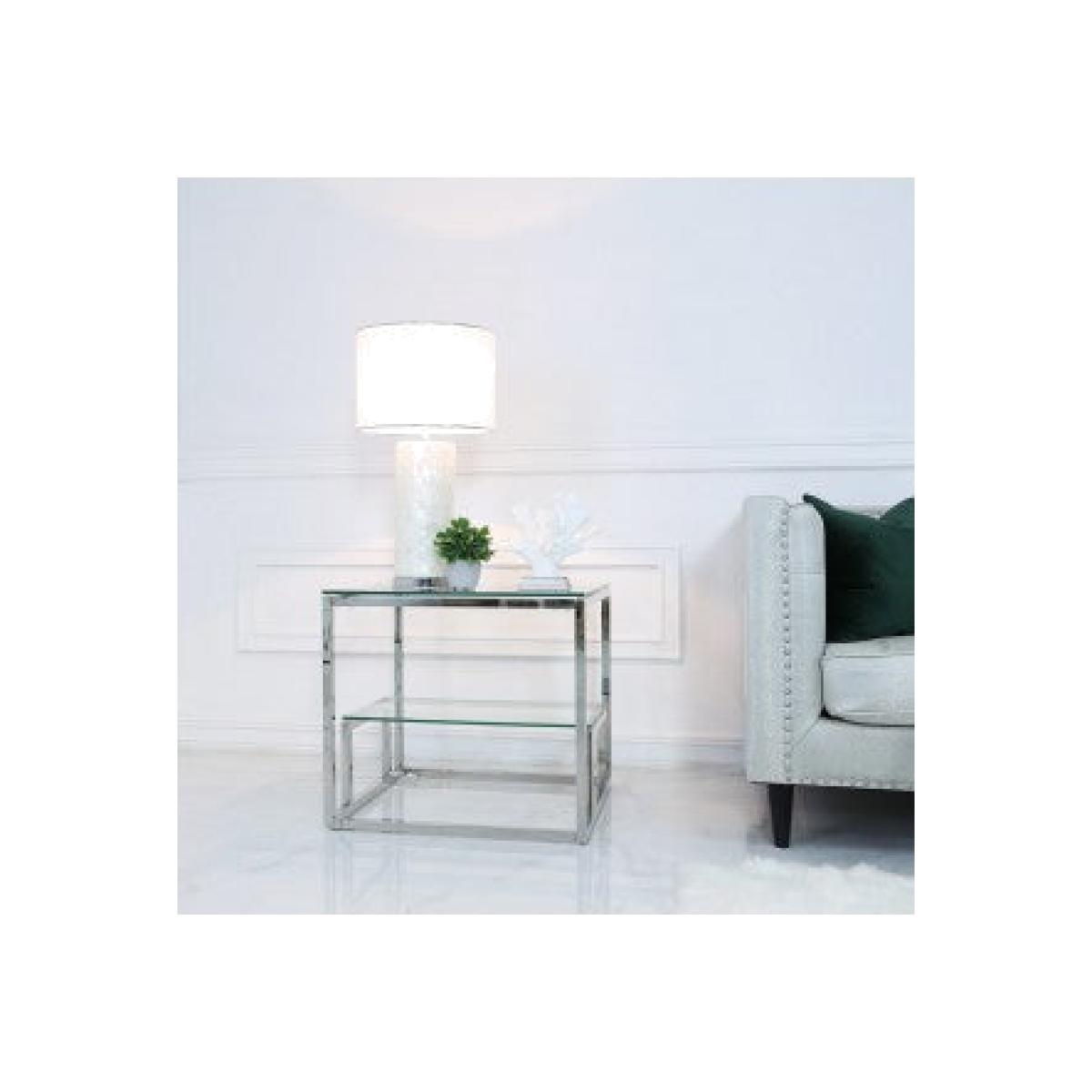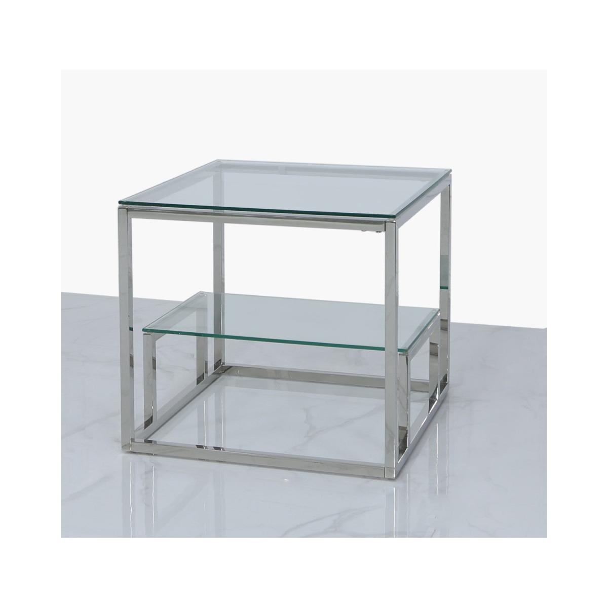 Harper Stainless Steel And Clear Glass Tiered End Side Table.