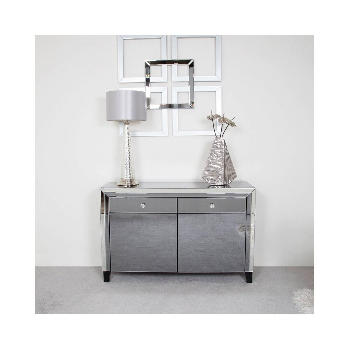 Deco Home Large Arctic Noir Tinted Mirrored 2 Drawer 2 Door Sideboard