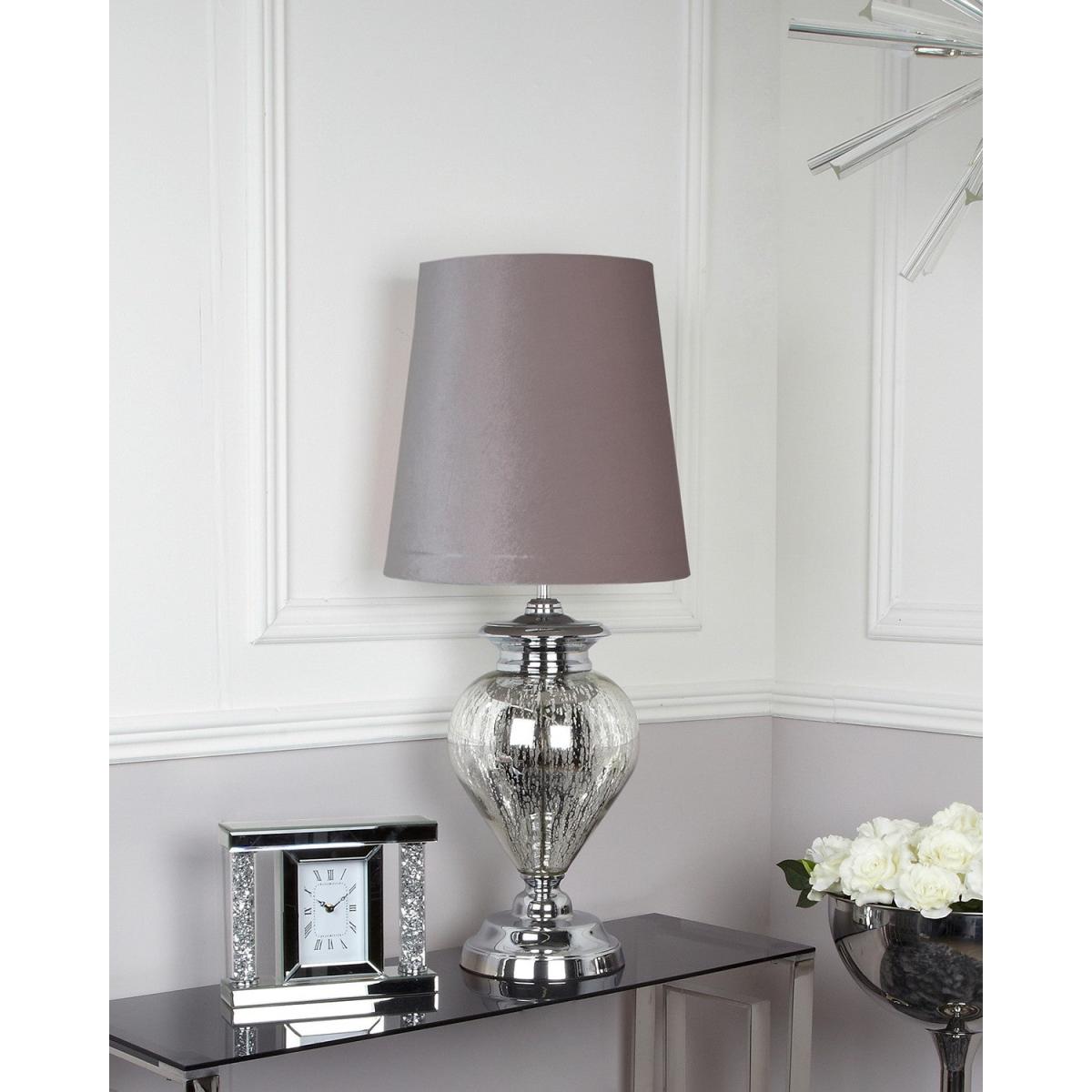 Deco Home Large Chrome Glass Regal Lamp With Grey Shade / Chrome