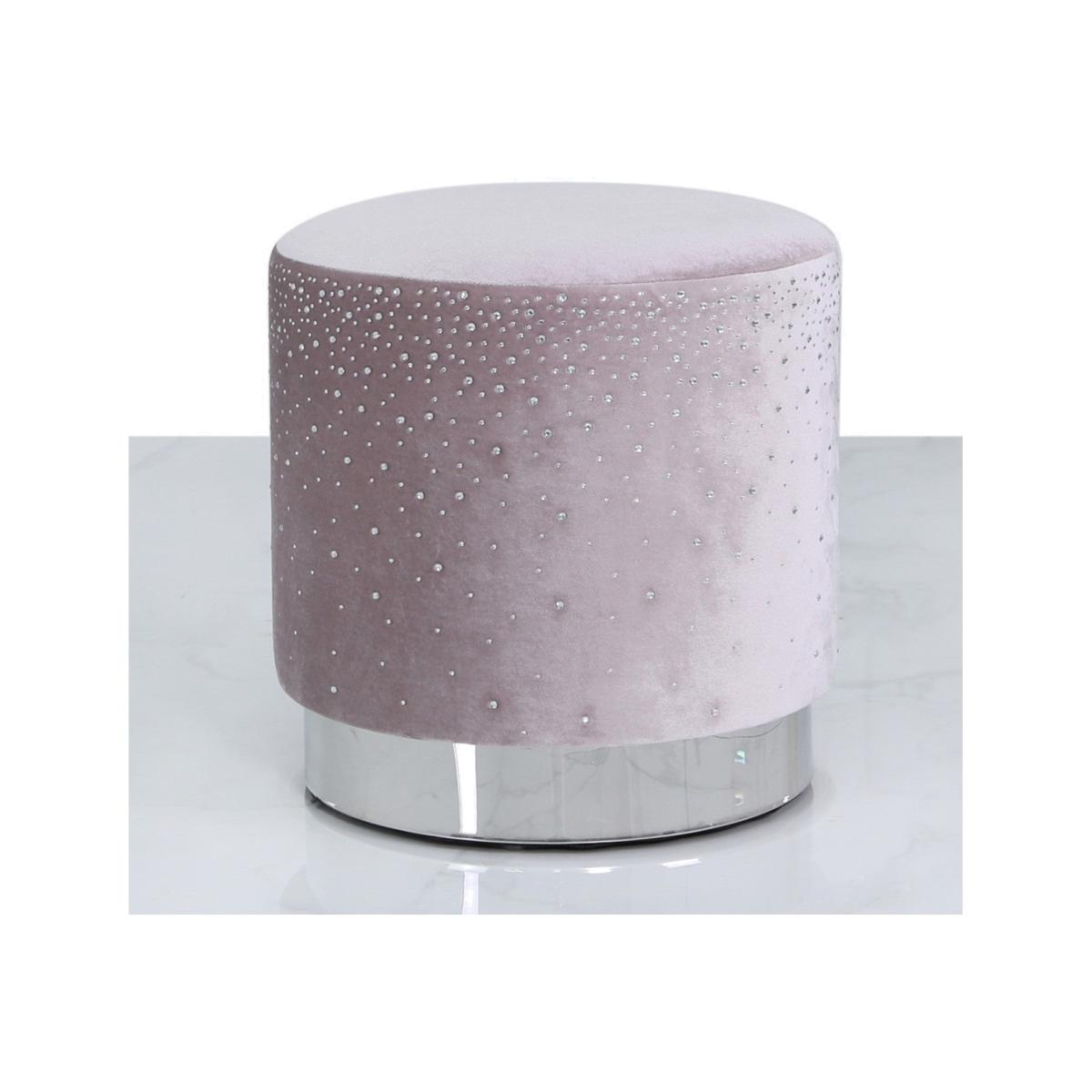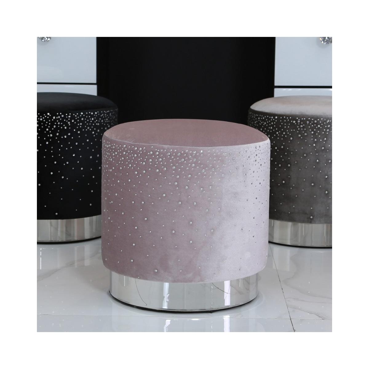 Deco Home Lavender Round Stool With Velvet Fabric And Sparkling Diamantes