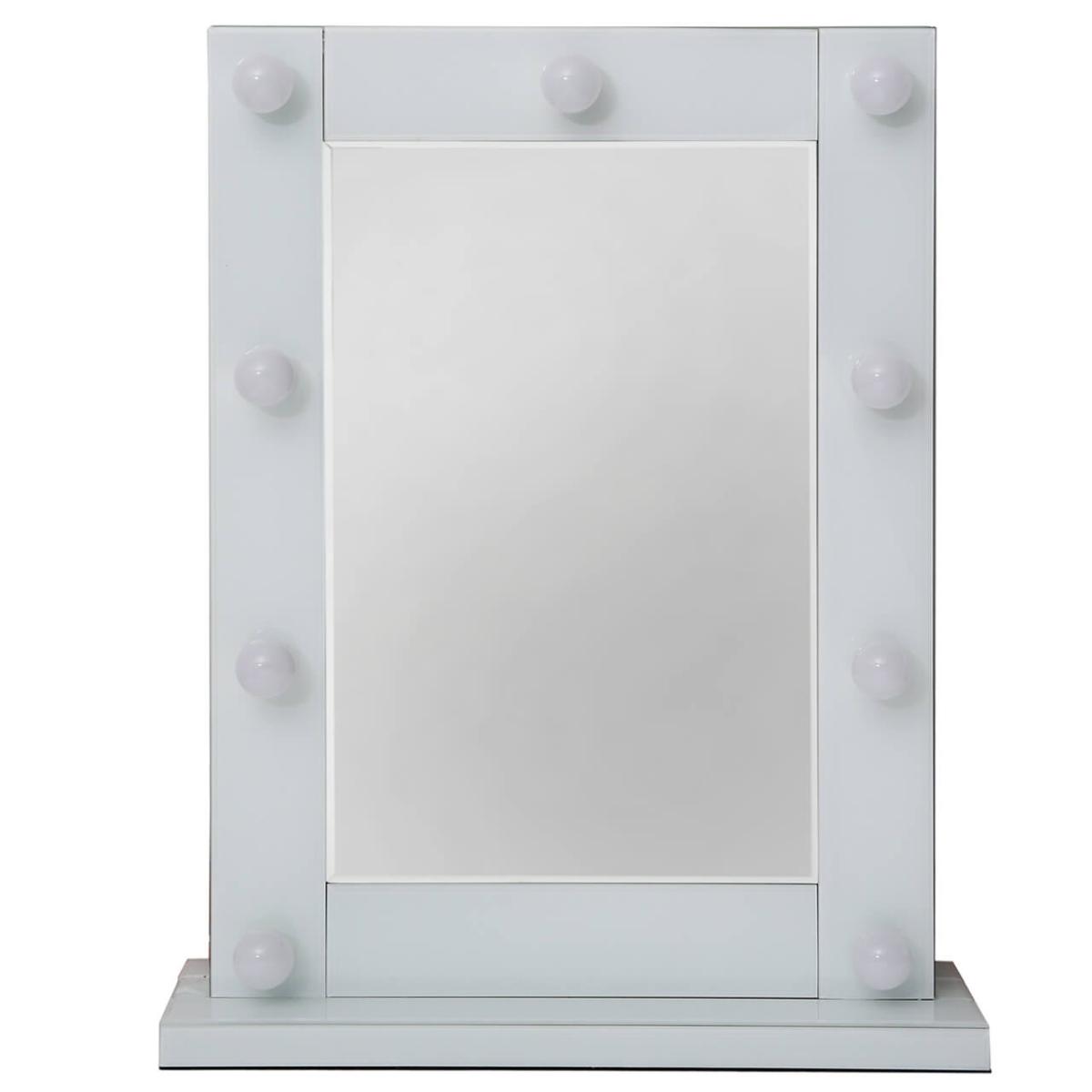 Deco Home Madison White Vanity Mirrored Mirror With 9 Dimmable LED Light Bulbs