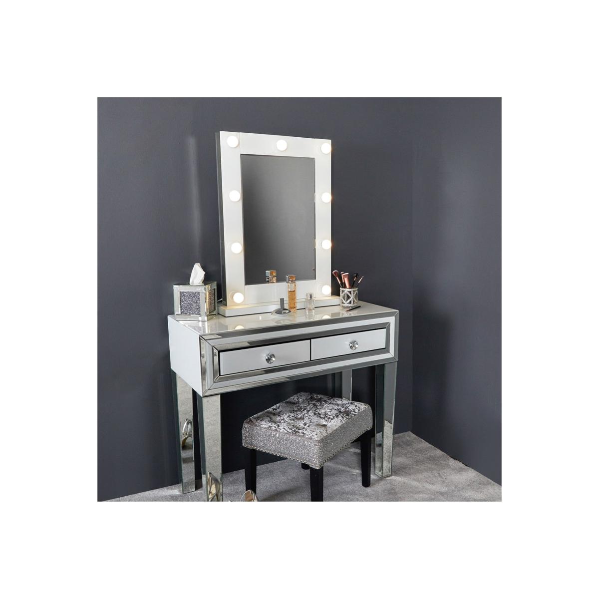 This stunning Madison White Vanity Mirror is a must-have essential to help brighten your morning routine. Bringing a modern take on old school Hollywood glamour direct to your bedroom, this opulent mirror boasts nine LED light bulbs.