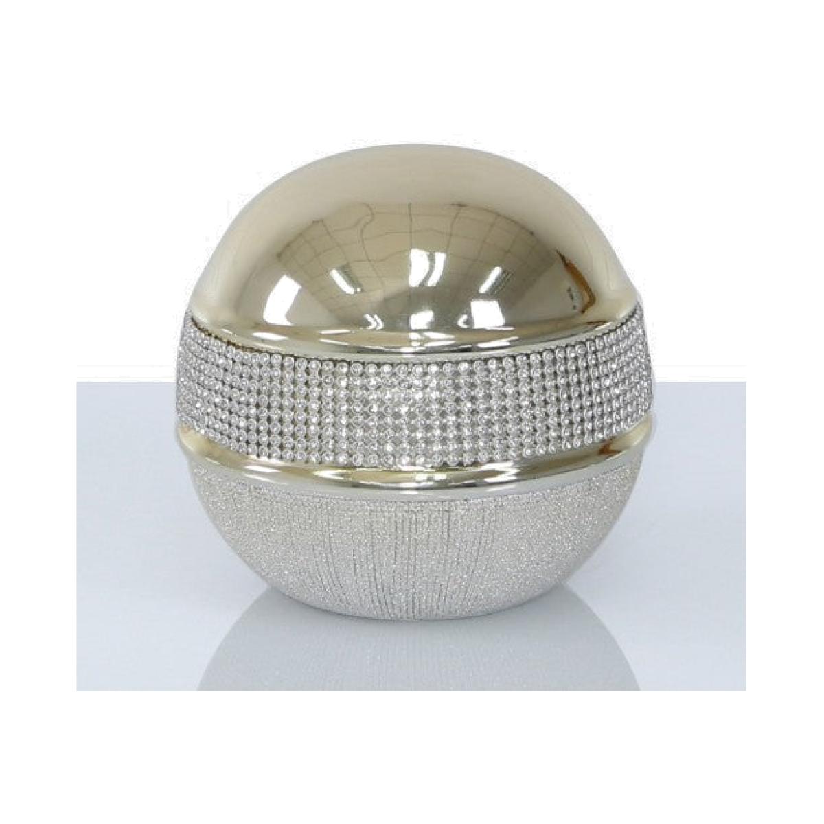 Medium 12. 5cm glitz decorative ball featuring a ceramic construction that has a champagne textured and metallic finish with a diamante strip embellishment.