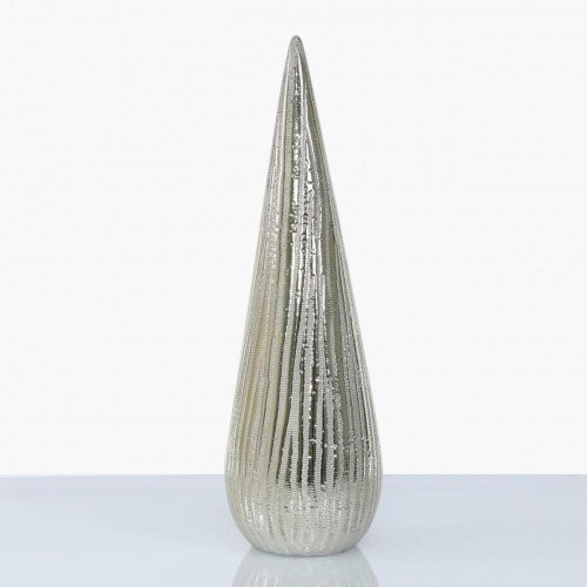 Medium 40cm cone decoration featuring ceramic construction with a champagne painted finish with a metallic rippled design.