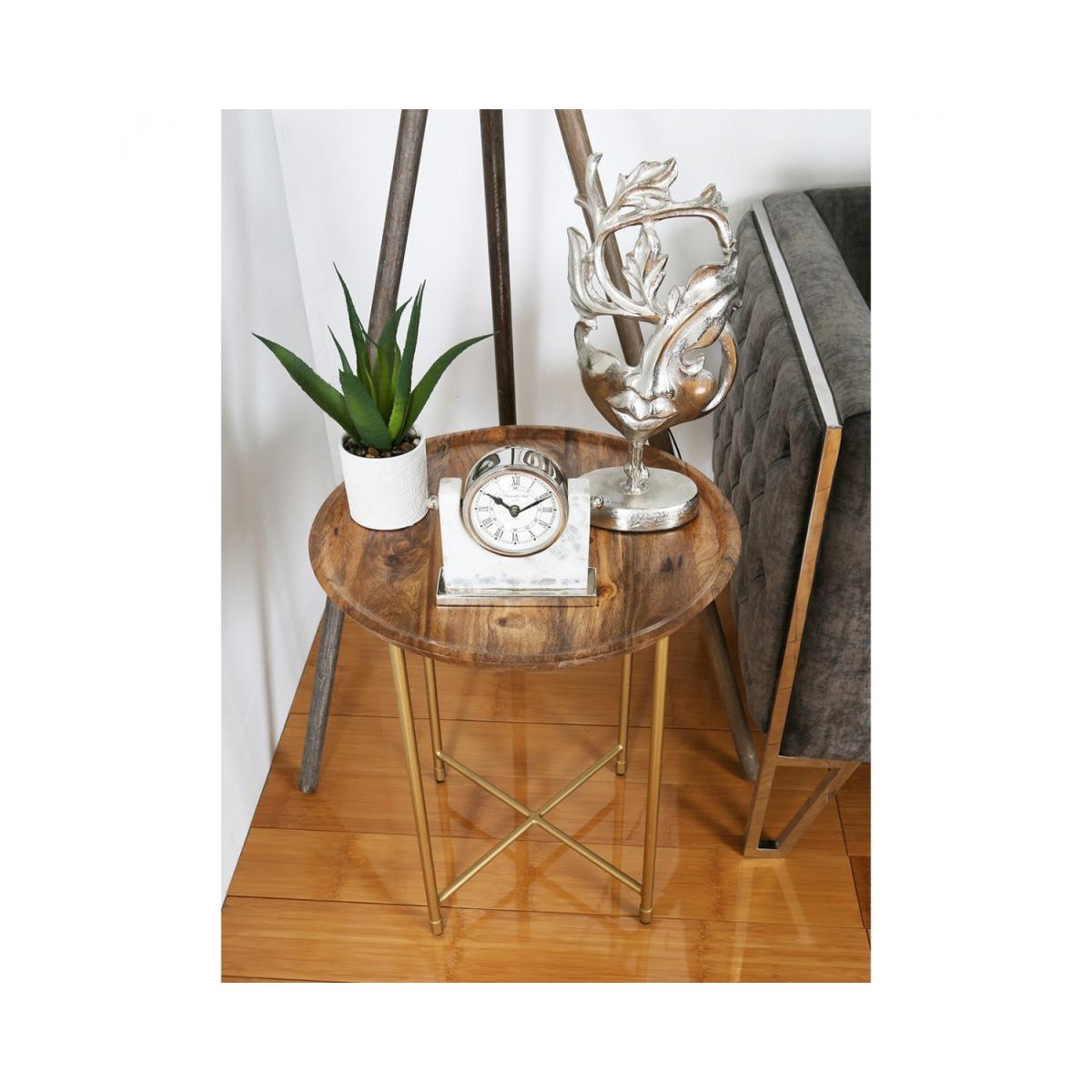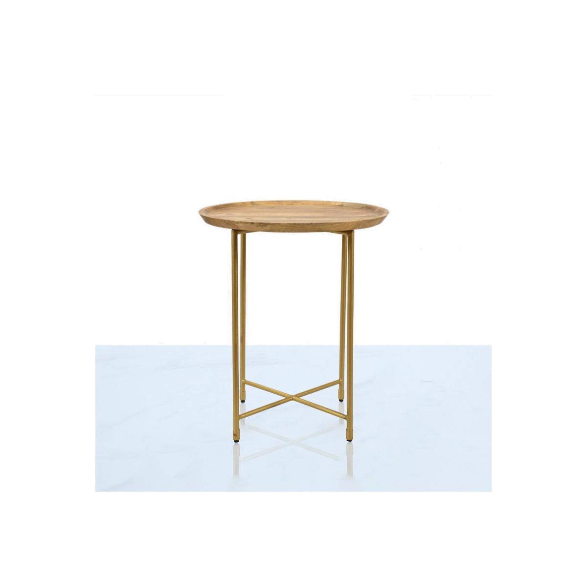 Value Mira end table featuring a beautiful natural wood tray style tabletop with a cross gold frame base.
