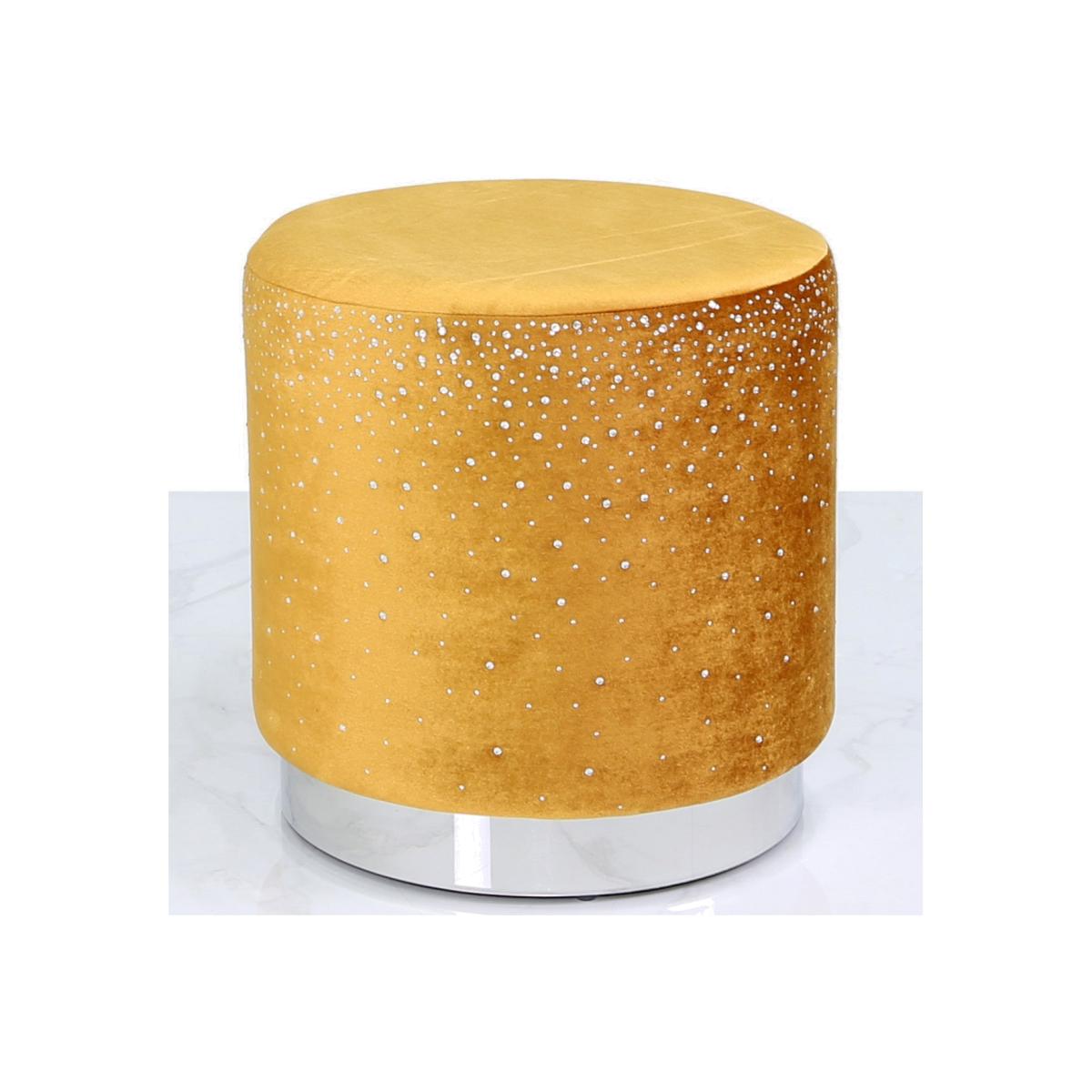 Mustard Yellow Round Stool With Sparkle Pattern.