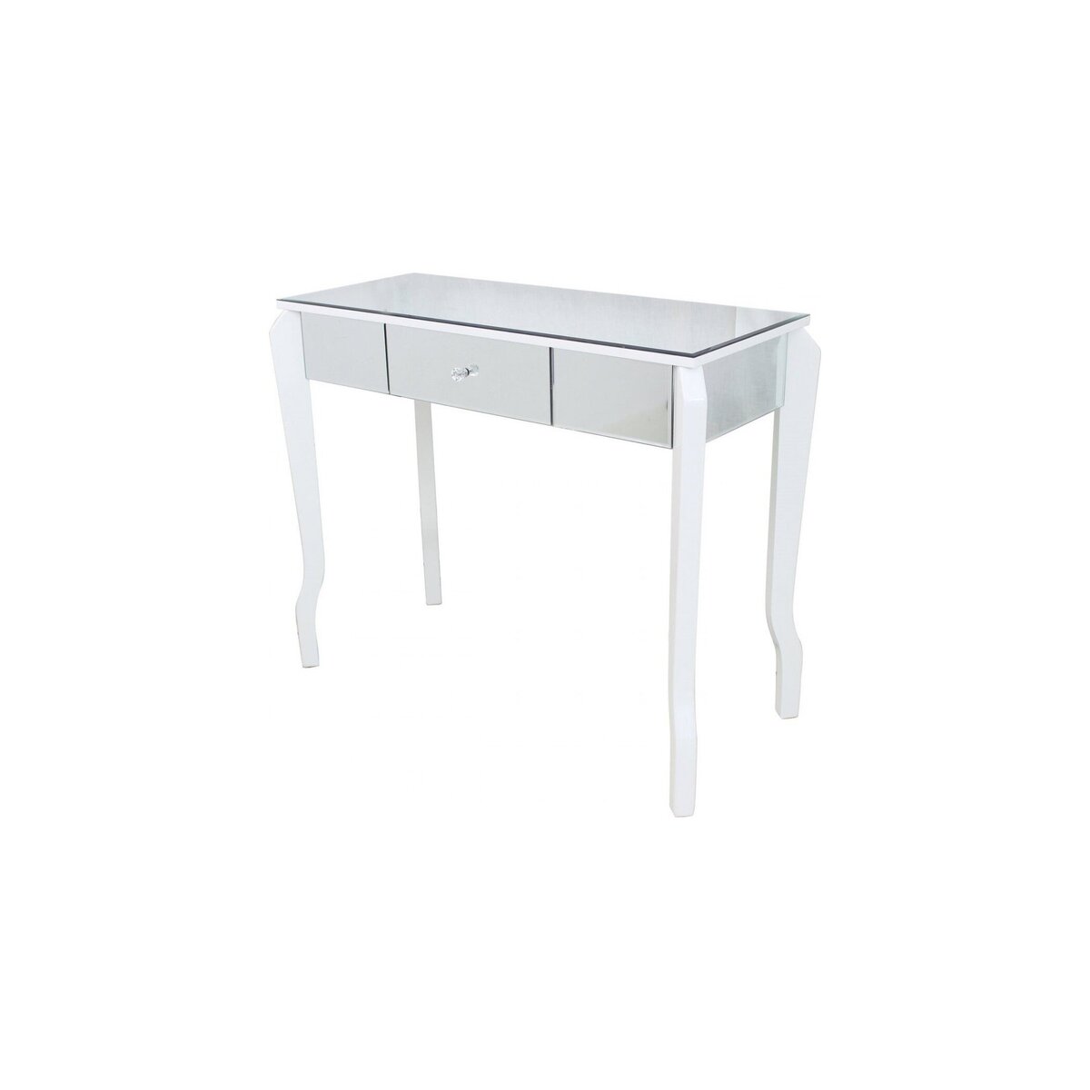 I love this console because of its versatile style and the glossy white finish that adds a touch of elegance to any space. It works particularly well in hallways or entryways where it can serve as a functional surface for keys or decorative accents. The two drawers make it practical for discreet storage, helping to keep clutter out of sight, while its mirror top creates a sleek, reflective surface that can brighten the room. To style it effectively, consider adding a statement lamp, a vase of fresh flowers, or a small artwork above it to highlight its decorative potential. This piece is especially suited to contemporary, modern, or even classic interiors where a clean, sophisticated look is desired.
