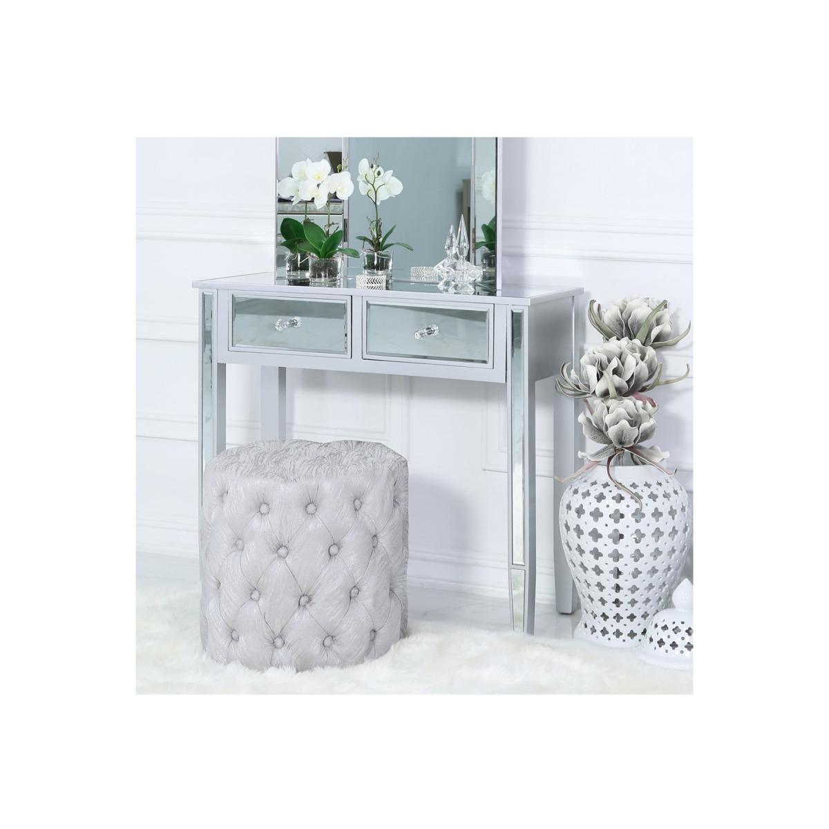 Elevate the level of style in your home with this luxurious silver velvet tufted round stool. Featuring a deeply padded seat tufted with buttons finished in a silver velvet fabric.