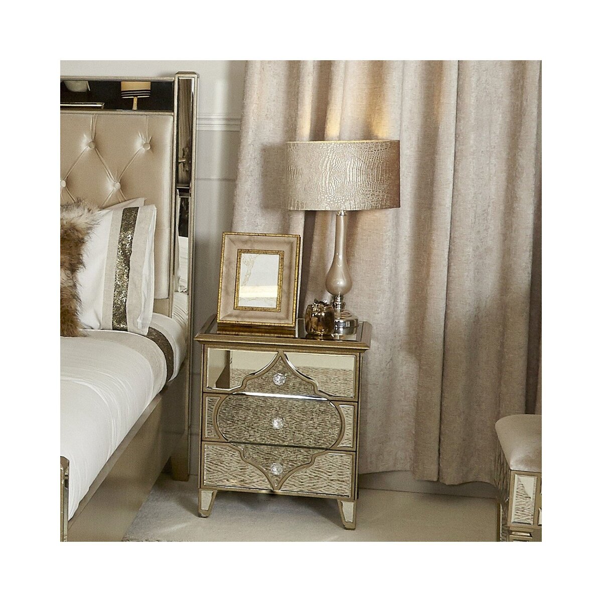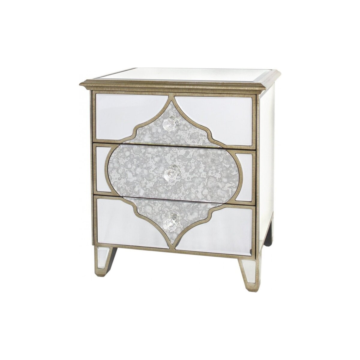 Deco Home Sahara Marrakech Moroccan Gold Mirrored 3 Drawer Bedside Cabinet