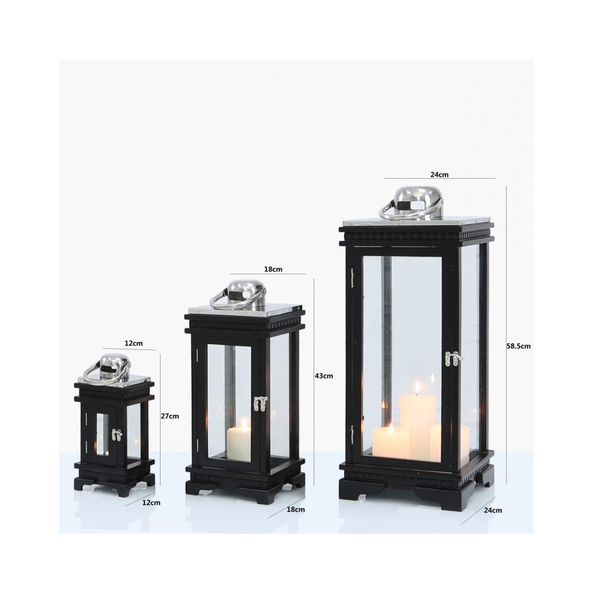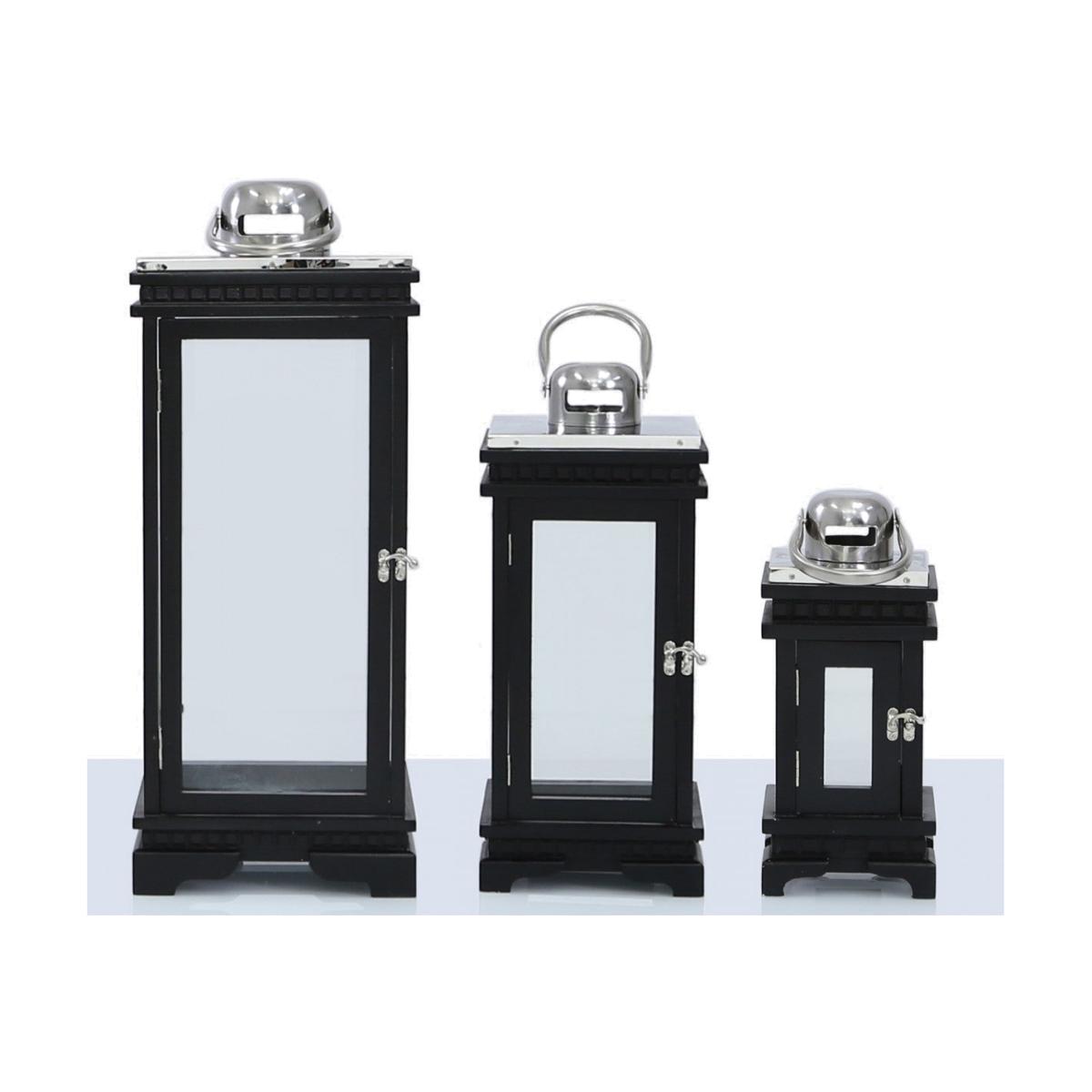 Deco Home Set Of 3 Black And Chrome Wood Lanterns / Chrome