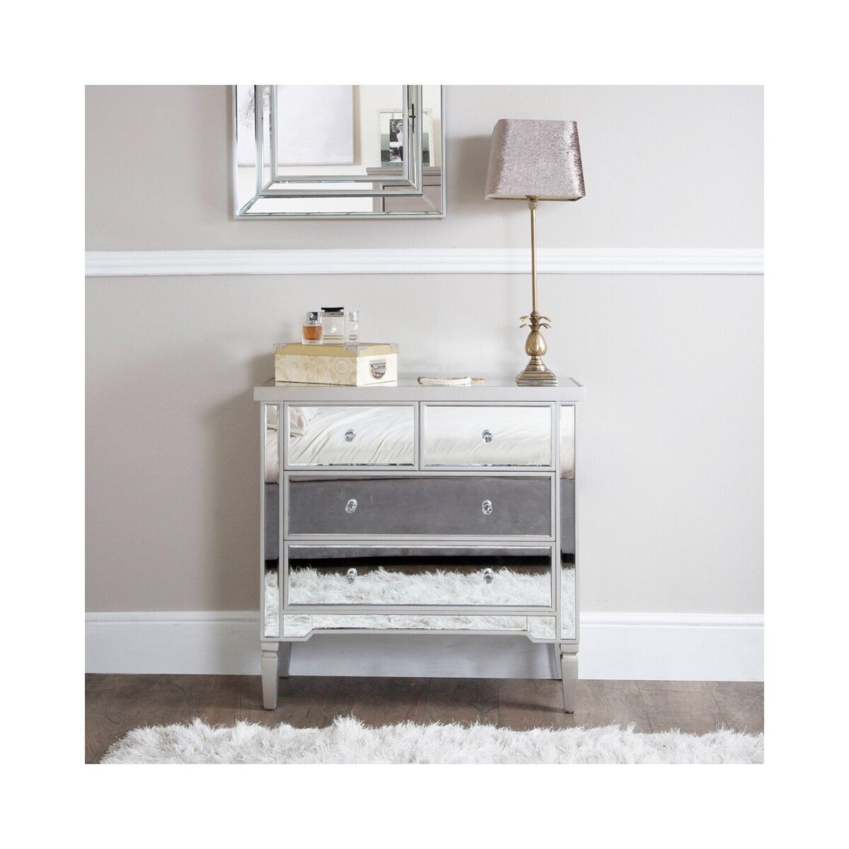 The Deco Home Set of Georgia Silver Mirrored Chest works beautifully in both contemporary and glam interiors, adding a touch of elegance while maintaining practicality. Its silver mirrored finish instantly brightens a space and can serve as a stunning focal point in bedrooms or living rooms. I love pairing it with soft-toned, neutral decor to let the reflective surface really shine, but it also works well with bold colours for a more dramatic look. For styling tips, consider placing a sleek lamp or a few decorative accessories on top to highlight its luxe appeal, and ensure you leave enough space around it to reflect light and maximise its visual impact. It’s an eye-catching piece that combines function with style, perfect for adding a sophisticated edge to your interior.