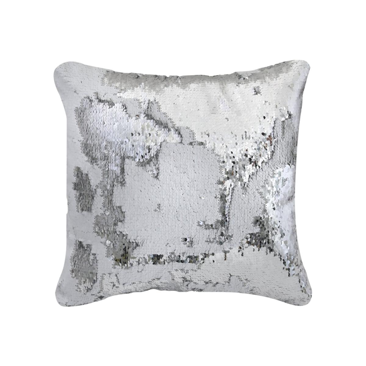 Deco Home Silver and White Mermaid Sequin Cushion Medium / White