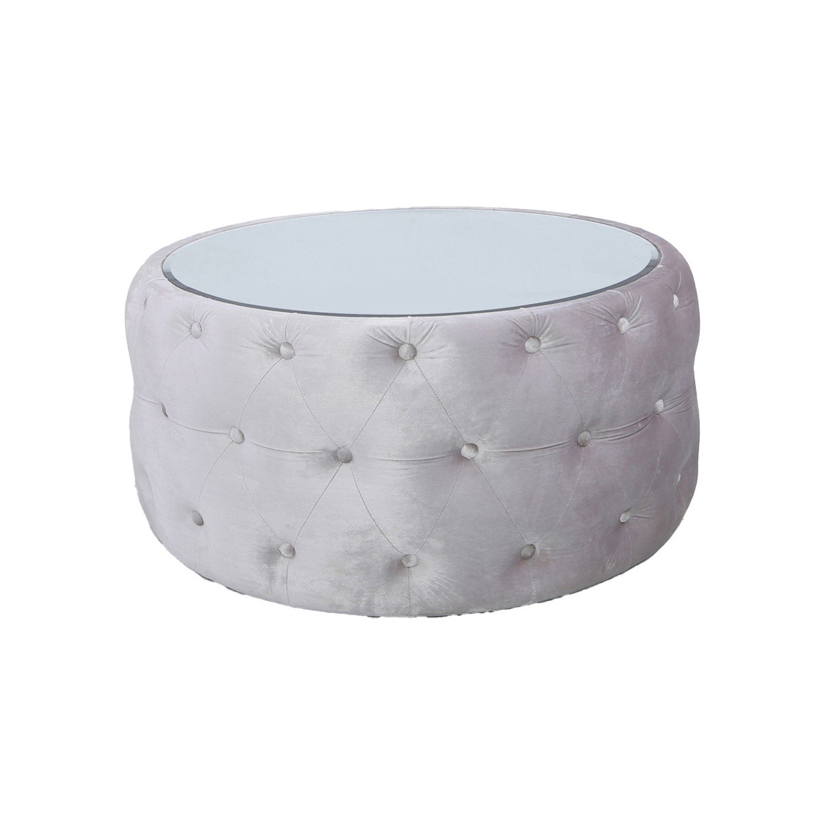 Deco Home Soft Pink Velvet Coffee Table With Tufted Buttons And Mirrored Top