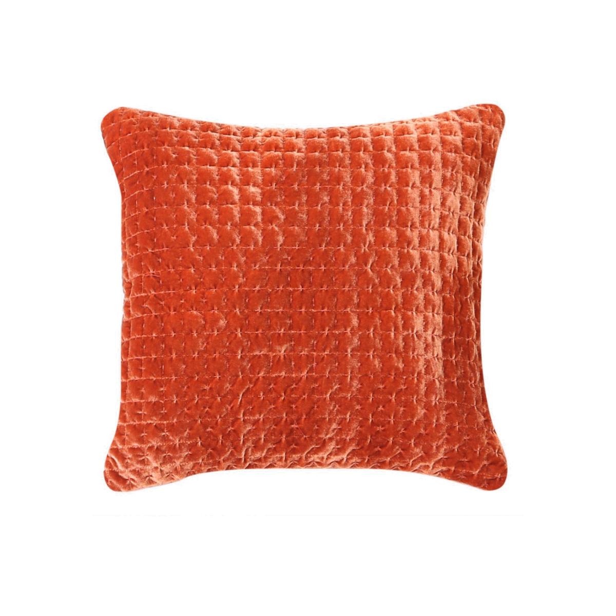 Adorn your sofa or bed in luxury style with the terracotta velvet cushion. Crafted in a terracotta soft velvet fabric and featuring a stitched quilted design. Pad included - cover and pad packaged separately.