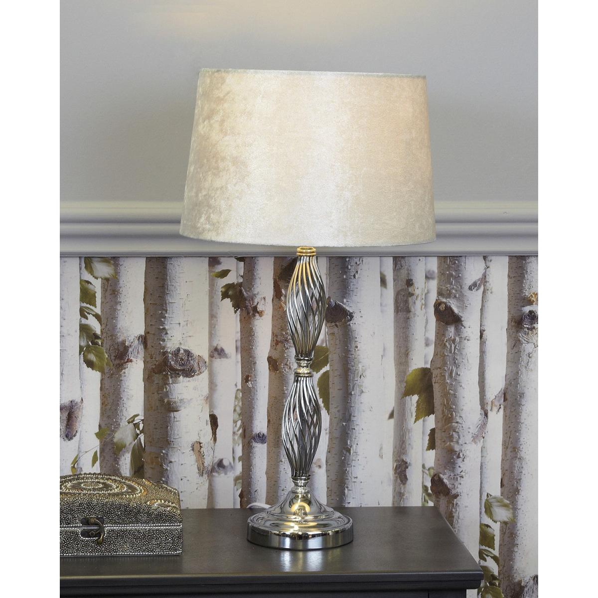 The chic base of the lamp is made from metal wire, which is elegantly shaped to create a wonderful and beautiful design. Complementing the base of two wire oval shape is a matching Ivory Velvet shade helps to emit a soft glow into your room.
