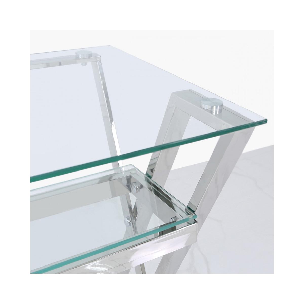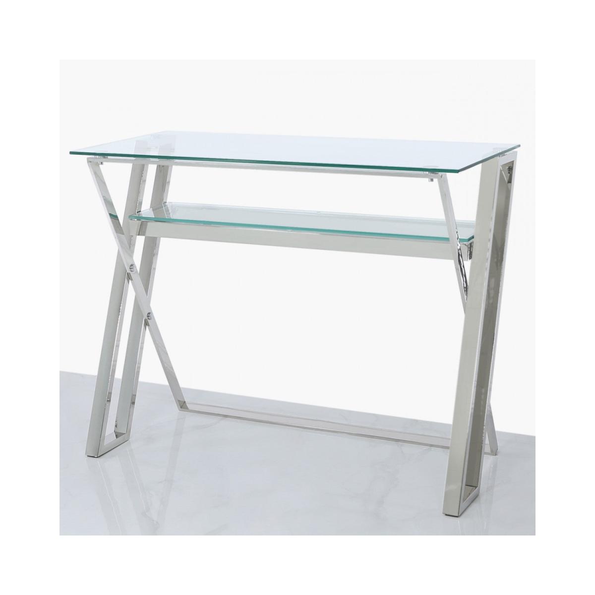 Deco Home Zenn Stainless Steel Office Desk With A Clear Tempered Glass Top