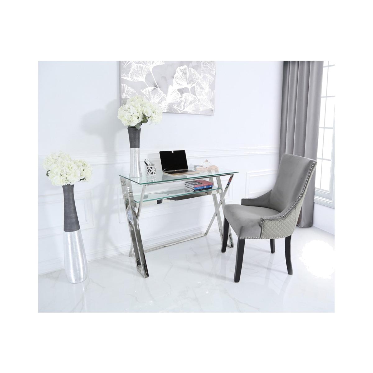 I love this sleek desk because of its contemporary aesthetic and versatile appeal. The stainless steel frame paired with the clear tempered glass top creates a clean, minimalist look that works beautifully in modern and industrial interiors. It’s especially suited to spaces with neutral colour palettes or monochrome schemes, allowing the desk to blend seamlessly while acting as a statement piece. For styling tips, consider pairing it with ergonomic, understated accessories and a few decorative objects like a statement lamp or a small plant to soften the sleek lines. It’s also practical - the transparent top helps keep your workspace feeling open and uncluttered, which is ideal for home offices or contemporary work environments.