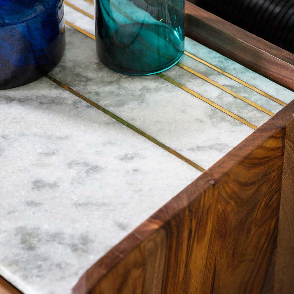 Our Deco Marble Bedside will create an opulent ambience with its combination of rich, natural materials. Manufactured from distinctive rosewood with a contrasting white marble top and elegant brass inlay.