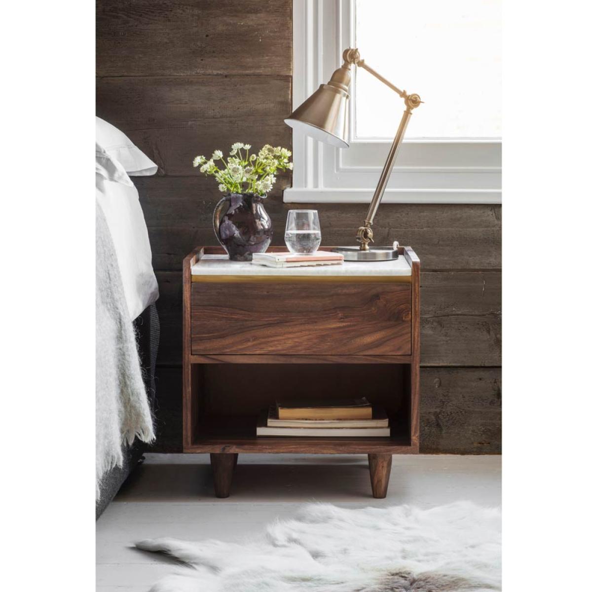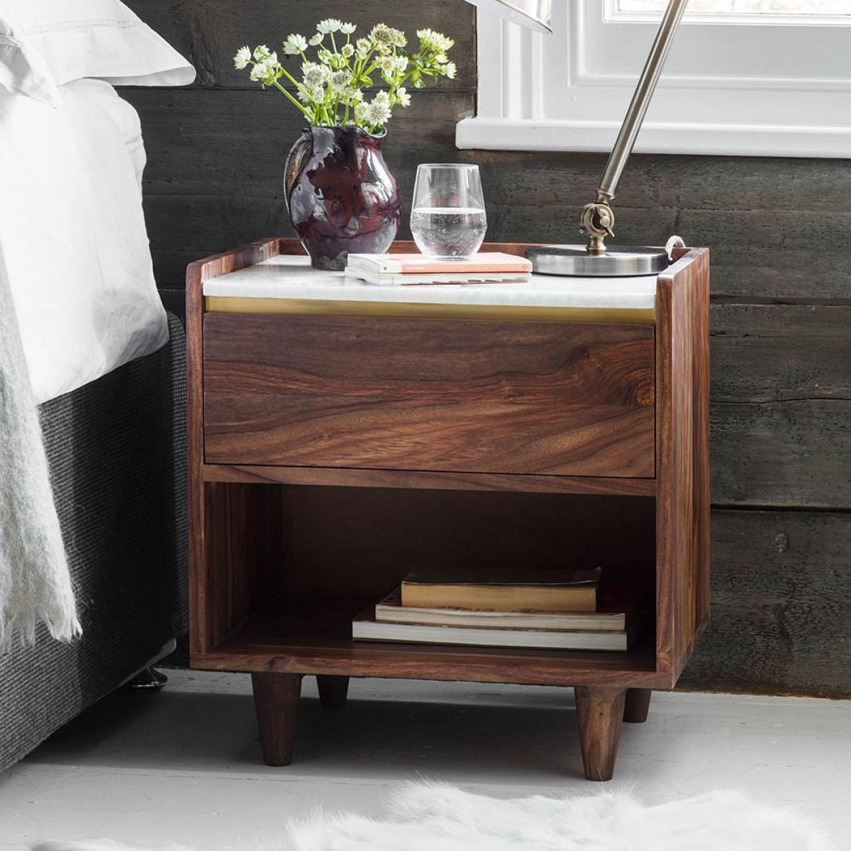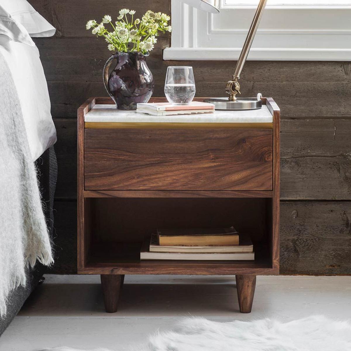 I’m a fan of this marble-top bedside unit for its clean lines and solid walnut frame - it brings a touch of luxury without feeling overwrought. It sits equally well in Scandi-inspired rooms, contemporary schemes or pared-back mid-century layouts, thanks to the combo of natural timber and easy-care marble. For styling, keep the top clutter-free with a slim lamp, a small vase of foliage and perhaps your current read. Use the drawer to hide chargers or coasters, and stack a couple of coffee-table books on the lower shelf. Its compact footprint means it slots neatly into tighter spaces too.
