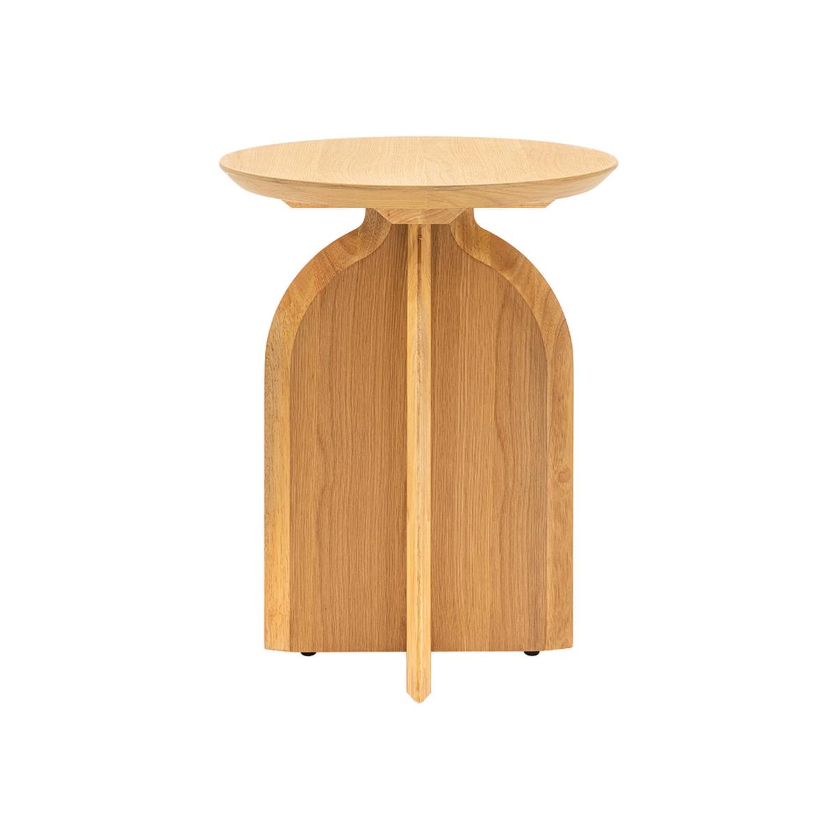 I love how this table’s simple oak curves bring a sculptural touch without overwhelming a space. Its compact size and natural finish make it a great fit for Scandi, modern or even pared-back boho schemes, and the cross-leg detail adds just enough interest to work as a focal point beside a sofa or armchair. Styling it is straightforward - think a small ceramic lamp or a single-stem vase plus a neat stack of books to introduce height variation. For a bit of contrast, layer a slim metal tray or ceramic dish on top to catch keys or loose change, keeping the look tidy and practical.