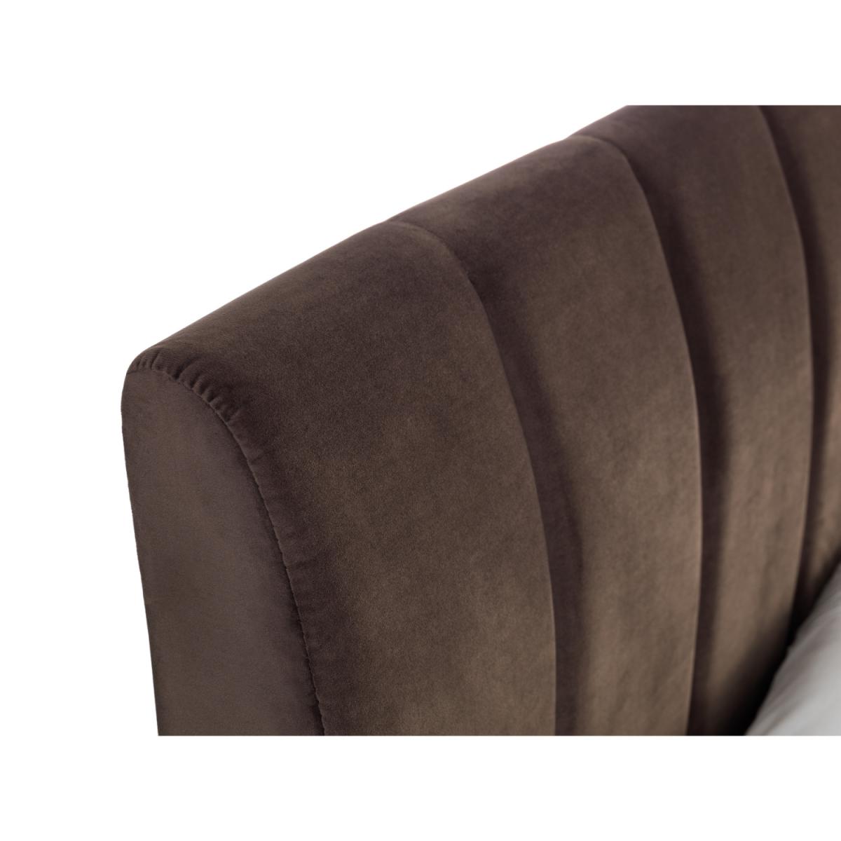 I love this bed frame for its rich velvet upholstery and understated yet sophisticated design. It works wonderfully in both contemporary and luxe interiors, adding a touch of glamour without overpowering the space. Its neutral brown tone makes it versatile, allowing it to be styled with a range of colour schemes, from bold accents to soft neutrals. Practical styling tips include pairing it with textured bedding layers to highlight its plush fabric, and adding metallic or wooden bedside tables for balance. It’s a practical choice for those looking to blend comfort with style, and its height allows for easy bed-making and access.