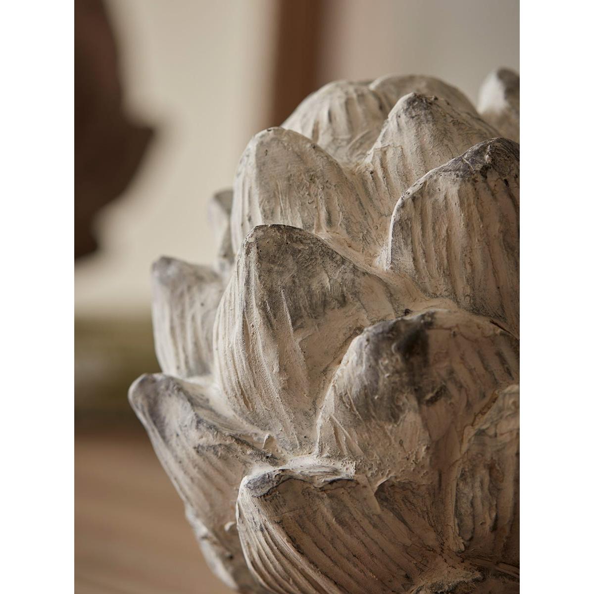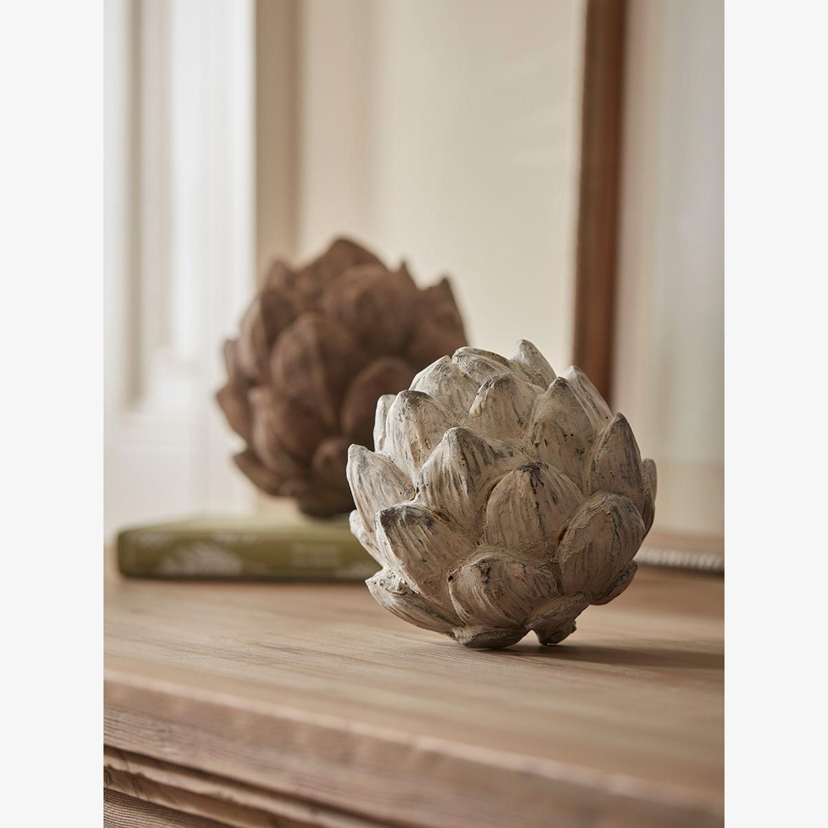 I love this whitewashed artichoke sculpture for its subtle texture and understated elegance. It's versatile enough to work in a range of interiors, from rustic farmhouses to modern minimal spaces. It’s especially effective when paired with natural materials like wood or linen, enhancing a calm, organic feel. Practical styling tips include placing it on a bookshelf or console table as a visual anchor, or grouping it with other natural objects for a curated look. Its neutral tone means it won’t compete with other colour schemes, making it a great everyday decorative piece that adds interest without clutter.