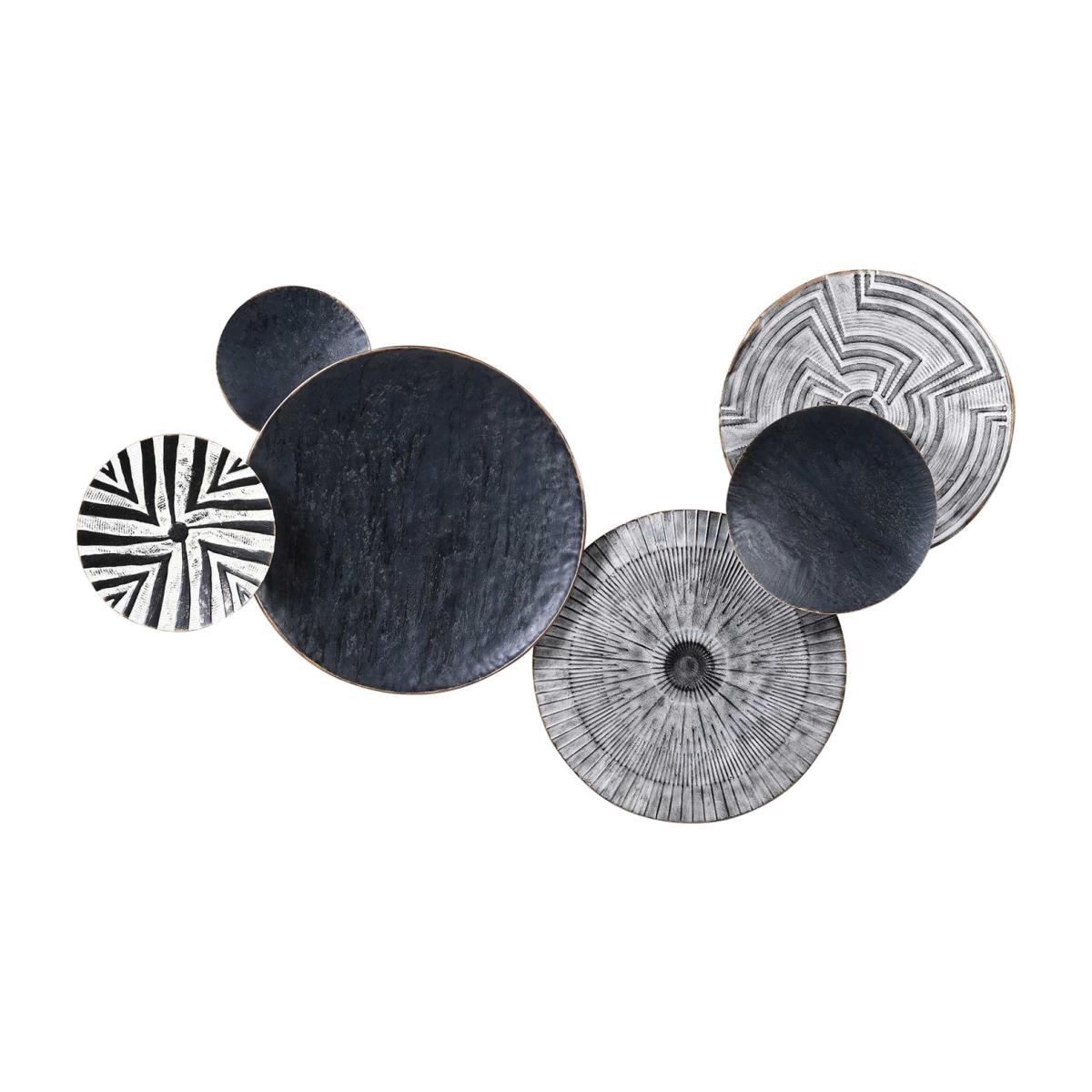 Design. A striking feature piece for any modern home, the Decorative Black and White Circular Tribal Print Wall Art is crafted from iron and features layered discs in different sizes. Decorated with rustic finishes and monochrome patterns, these wall plates create a contemporary Aztec aesthetic that taps into the current tribal trend. A real appreciation of artistic culture, this stunning metal wall art looks great in any area of the home.