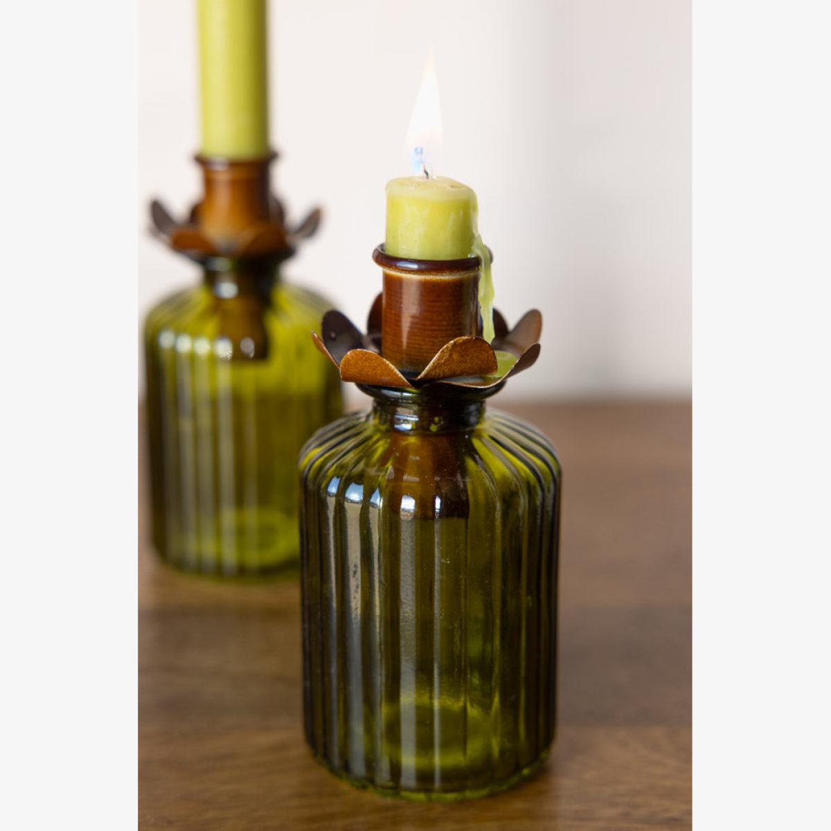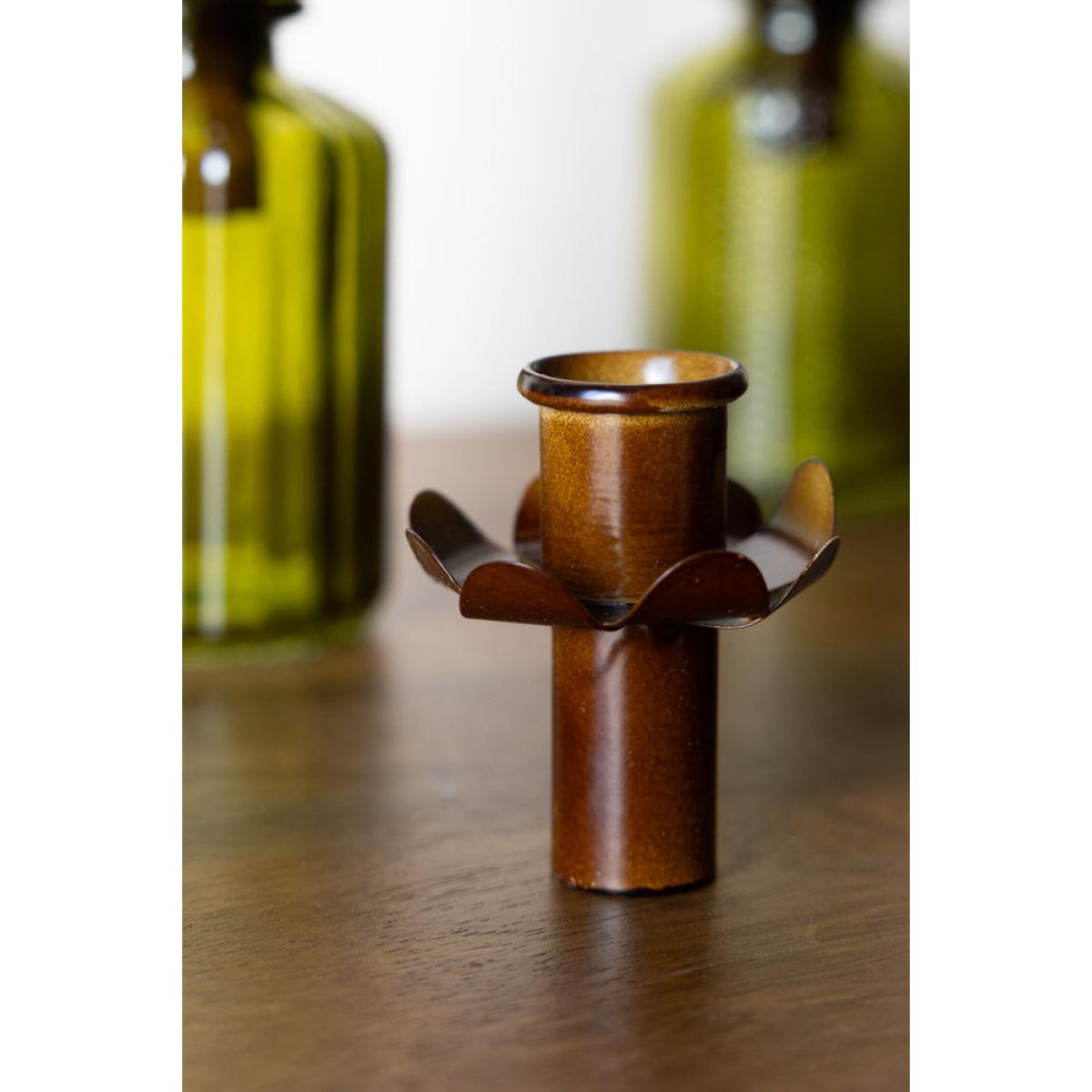 Meet this little gem that will transform just about anything into a stunning bottle candle holder. This deep rust metal candlestick converter is designed to nestle into small pots, single-stem vases, or whatever you fancy; creating the prettiest flower-like effect as it peeks out. Just pop in a dinner candle, and voila! Instant rustic charm. It's subtle yet striking, seamlessly bring a warm, vintage-inspired glow to your space and others. Whether you're styling up your dinner table or adding a cosy floral touch to your shelves and other candle holders, this unique candlestick holder is the best way to make your candles feel extra special. It's a tiny detail that makes a big difference! Beautiful Flower Bottle Candlestick Holder Measures: W6cm x H5cm Materials: Metal