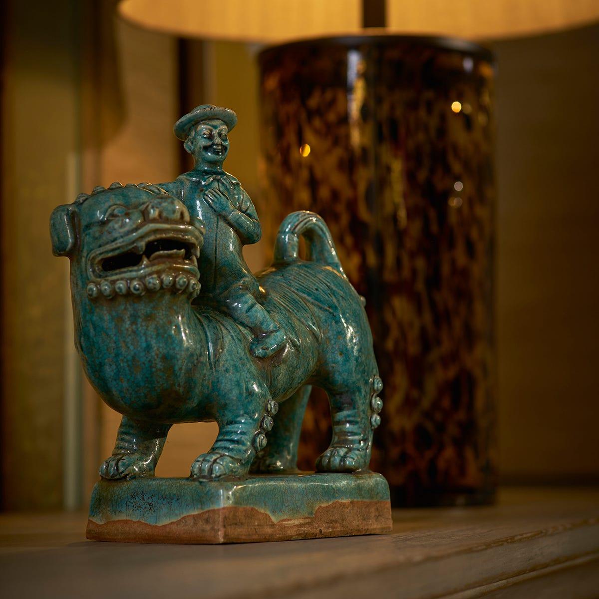 Don't let the name of this hand-painted ceramic sculpture fool you: a Han foo dog technically isn't a dog – it's a lion. Inspired by the traditional Han dogs found protecting Chinese imperial palaces and places of worship, our ceramic version is finished with a celadon glaze that draws on early Chinese pottery techniques.