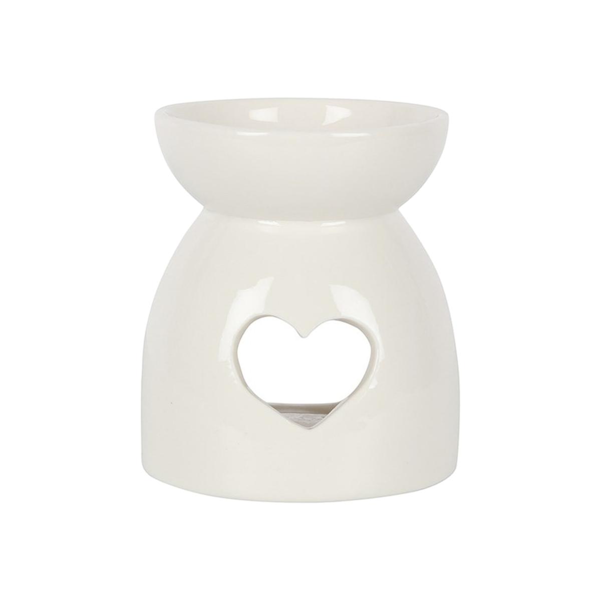 This simple and understated oil burner and wax warmer comes in a crisp white that suits a wide variety of decor styles. A heart cut out makes a sweet added touch that will be loved by many. Compatible with fragrance oils and wax melts.