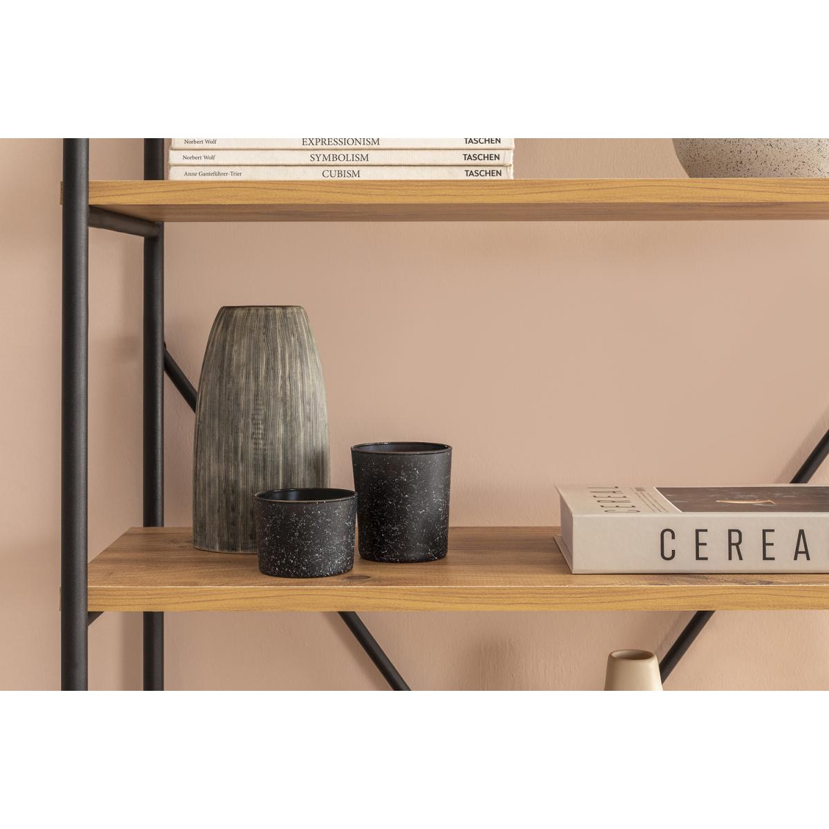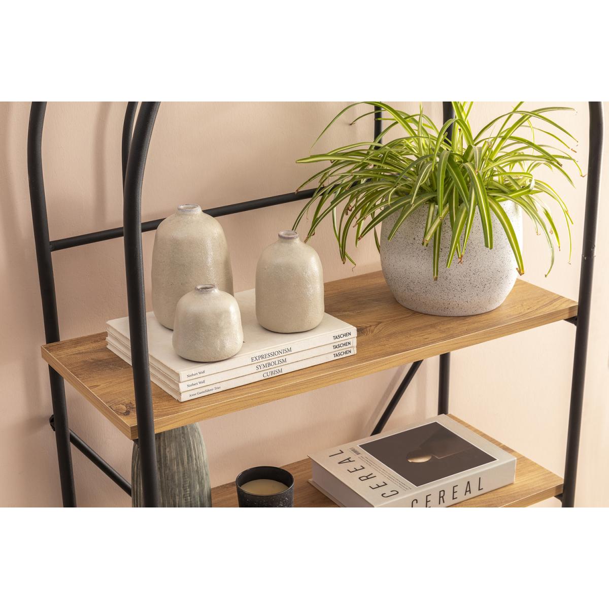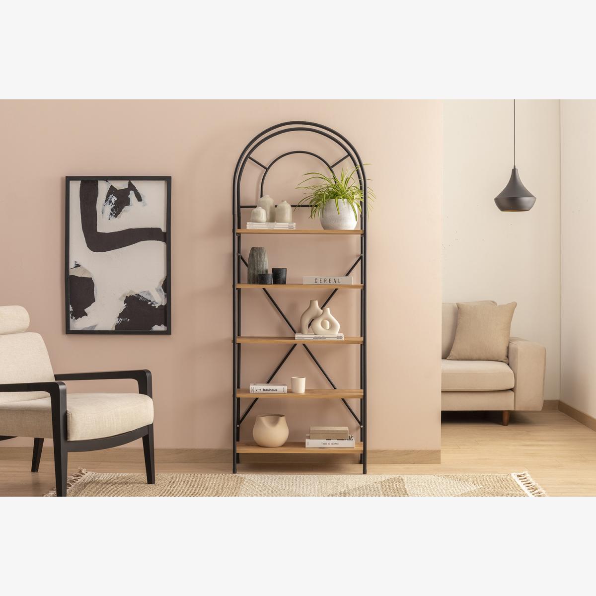 I love this bookcase because it combines industrial metal framing with warm oak shelves, giving it a versatile and contemporary appeal. It works particularly well in modern and eclectic interiors, adding a touch of minimalist elegance while providing practical storage. When styling, consider layering books with decorative objects like vases or plants to create visual interest. It's also perfect for showcasing your favourite accessories or artwork, keeping the space organised without feeling cluttered. To maximise its potential, place it in living rooms or bedrooms where it can serve both as a functional piece and a statement display.