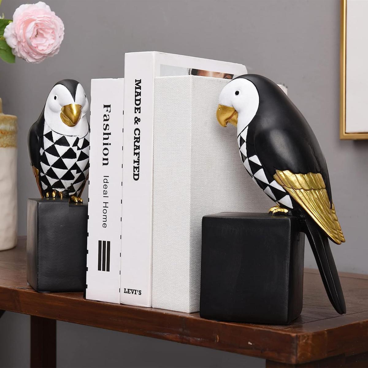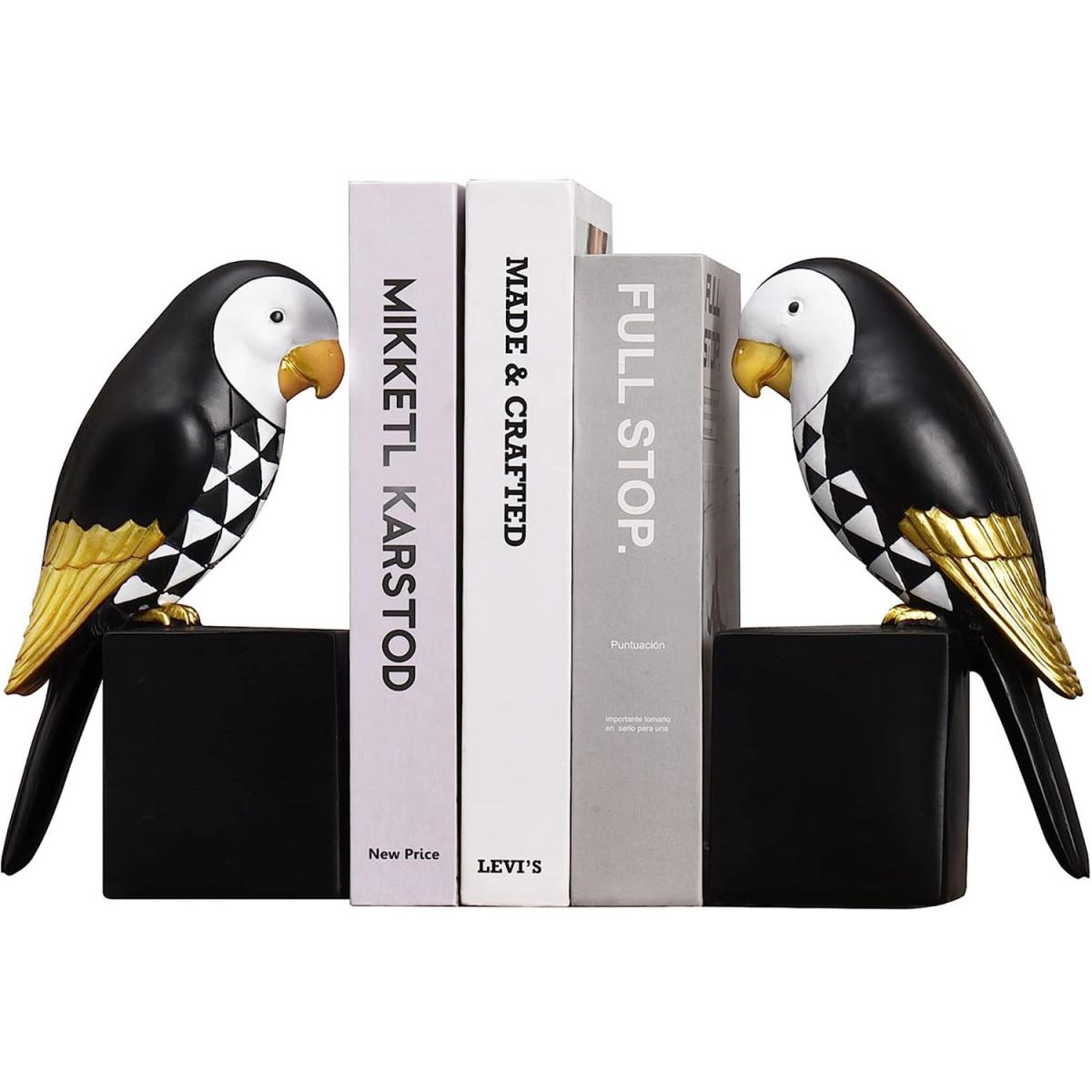 These parrot bookends will add a unique look to your desk or shelves while keeping books organized and in place, so heavy books don't easily tip. Our cool bookends are both functional and decorative. Unlike similar bookends on the market, our decorative book holders were hand crafted and hand painted from a high-quality resin material. These heavy-duty bookends won't slip or cause scratches to your shelves. These heavy-duty book holders will look fantastic in your home and add life to any boring shelf. Our book stoppers work great for heavy books, but they also hold CDs, DVDs, magazines, and video games. Comes in a uniquely branded gift package box with protective white foam padding. Perfect to also be used as an elegant gift for Birthdays, Anniversaries, Weddings, Holidays, and all other special occasions