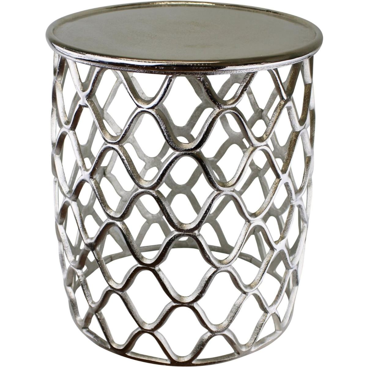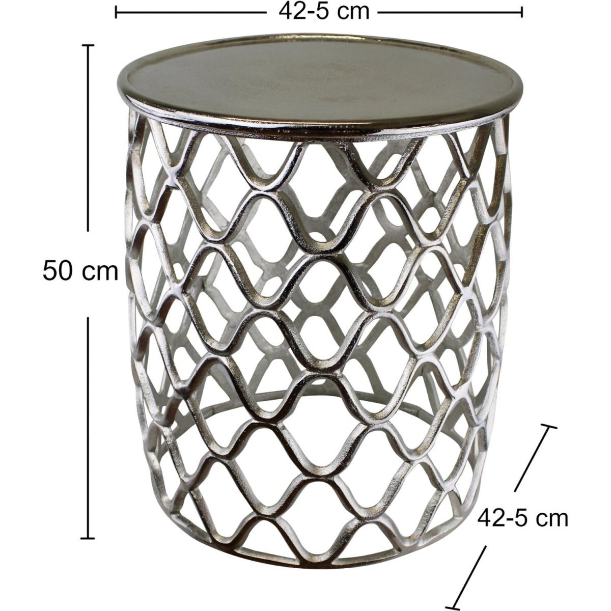 Make a statement in any room by adding this silver metal stylish side table. It has an ornate lattice-style base great for adding a sense of light and space to your living room or hallway. Fully assembled furniture that will sit beautifully in your room, perfect for display or as an elegant lamp table.
