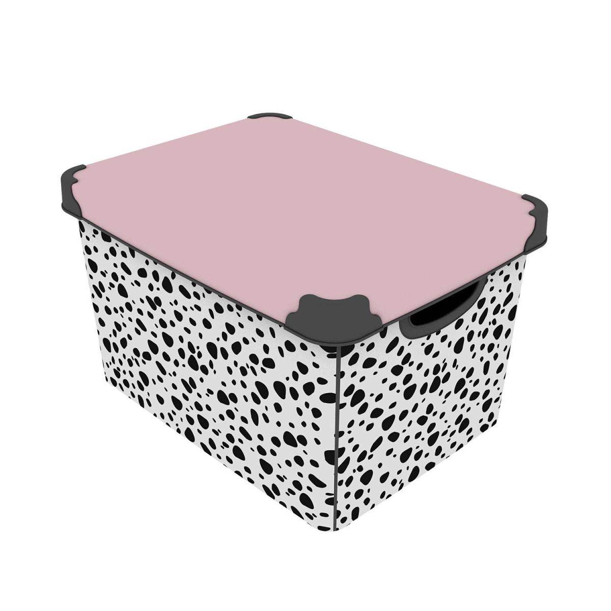 This pink monchrome storage box is a practical yet charming addition to various interiors. I love how its colour brings a soft, playful touch to spaces like kids’ rooms, nurseries, or even a cosy corner in a living room or bedroom. It works well in organised environments where function meets style - think storage for toys, crafting supplies, or textiles - thanks to its sturdy lid that helps conceal clutter. To style it effectively, consider pairing it with neutral or pastel tones for a cohesive look, or using it as a standalone pop of colour on open shelves or under side tables. Its cheerful pattern and colour make it an excellent choice for adding personality without overwhelming the space.