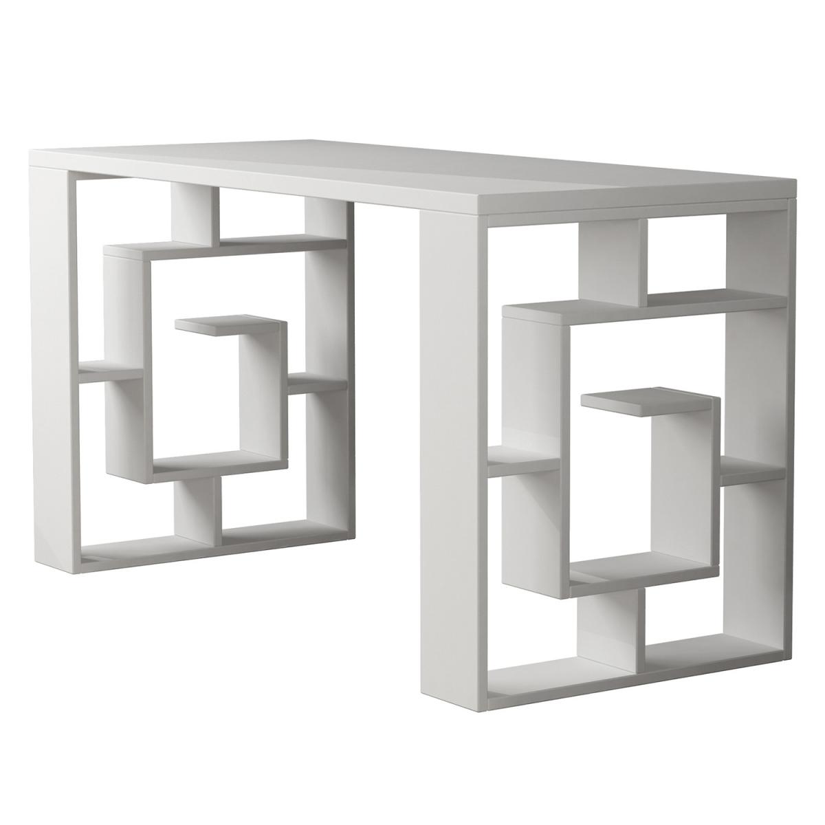 Decortie Modern Home Office Desk With Shelving - White