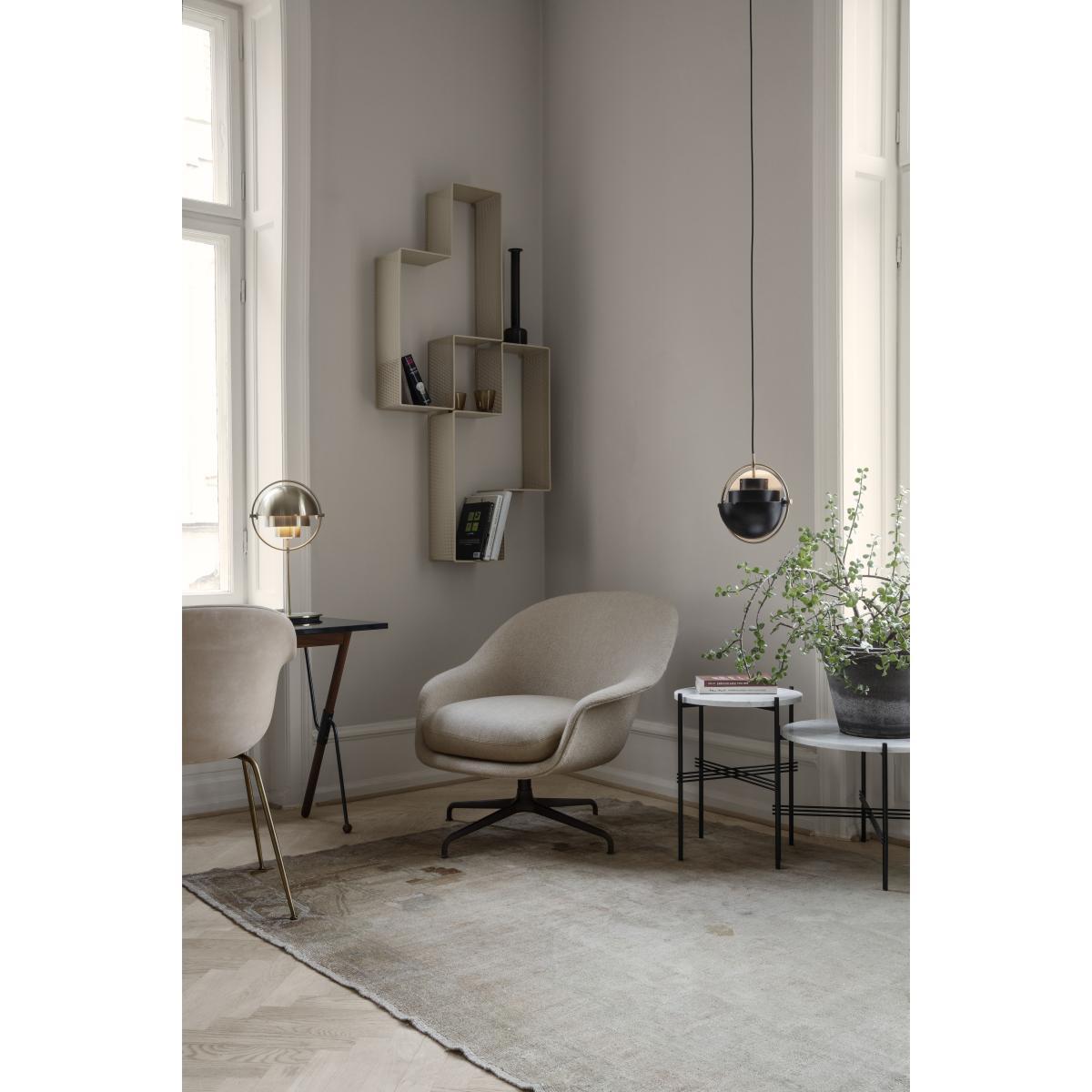Mathieu Matégot's organic forms and lightness of touch create a sense of joy and the ground breaking and innovative techniques that he employed result in aesthetic and, above all, contemporary designs. Matégot was the first person to combine metal tubing with perforated sheet metal, a pairing that particularly characterizes his work. Many designers spend years developing their designs, simply to make them better and better. This was certainly not the case with Mathieu Matégot. He only devoted one decade to the design of furniture and interior accessories, yet these distinctive 1950's designs would later be considered iconic. Today, Matégot's designs are equally fit for purpose as when they were originally conceived and his legendary designs are both timeless and classic. The Nagasaki chair is one of few three-legged models and is still Matégot's best-known piece and is included in the permanent exhibition at the Vitra Design Museum. The collection includes chair, high stool, side table, bookshelf and wall coatrack. This wall coatrack is made of a brass central hub, arms and ends are in powder coated metal.