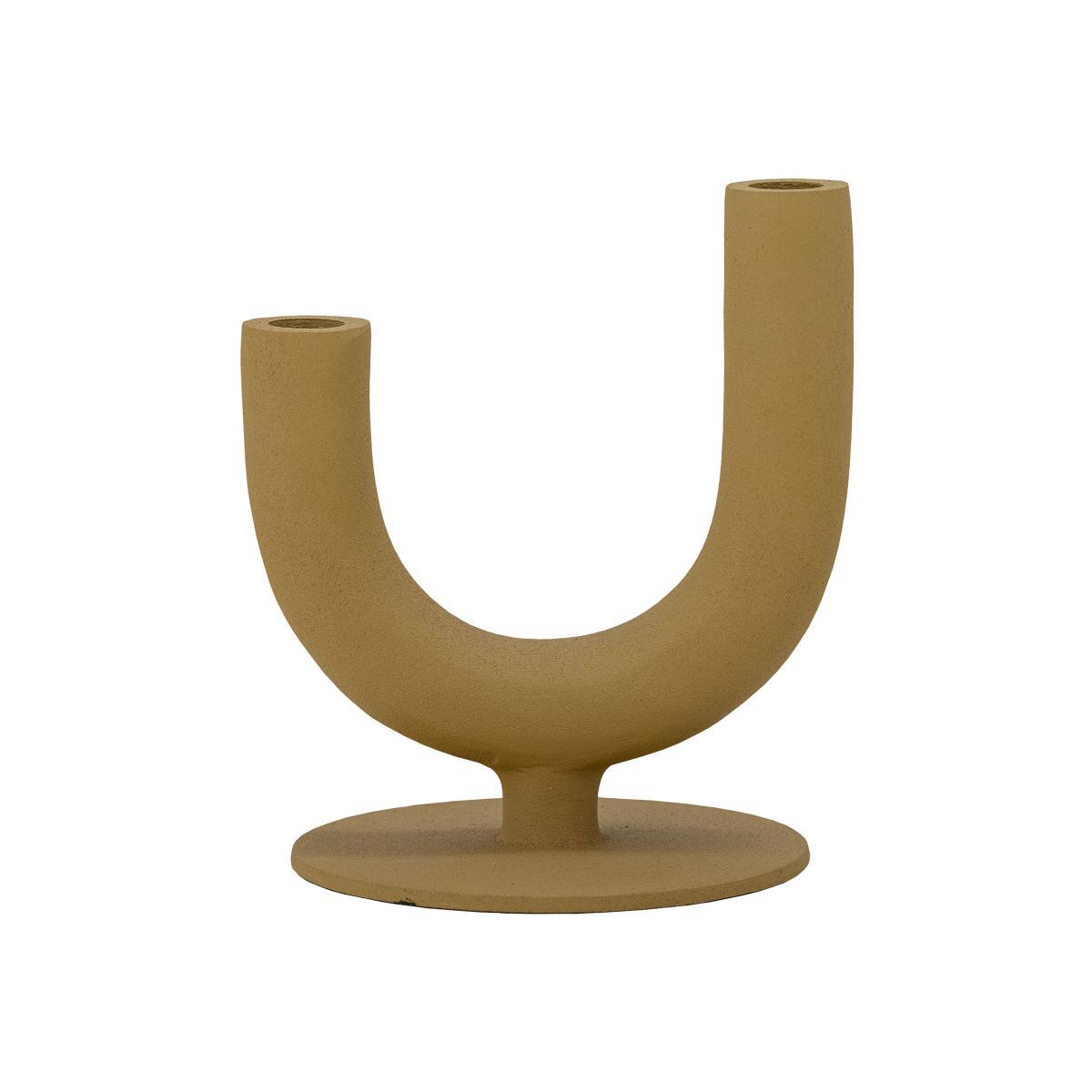 This aluminium candlestick boasts a superb mustard yellow colourway. Its coarse surface creates a stunning matte look. Its unique shape can hold two taper candles (not included). The choice of material, colour and shape create an interesting contrast, perfectly suited to a dining table, side table or windowsill.