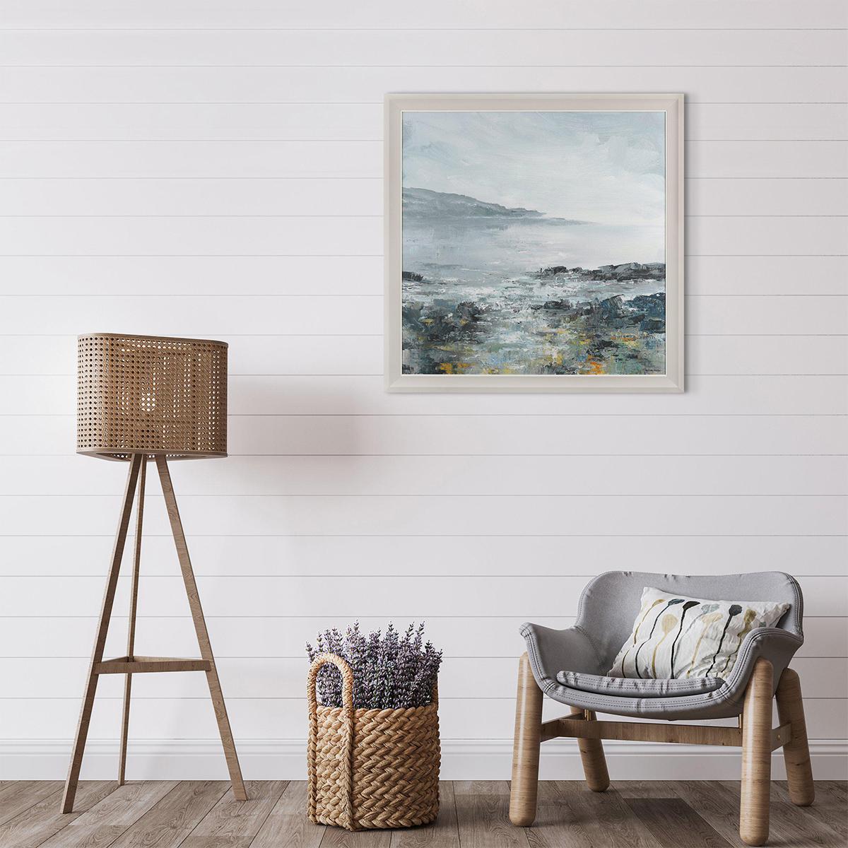I really like this blue framed canvas - it’s a versatile piece that works particularly well in contemporary or coastal-inspired interiors. The calm, muted tones make it an easy addition to neutral colour schemes, adding visual interest without overwhelming the space. It’s especially effective above a sofa or mantel, where it can serve as a focal point. For practical styling, consider pairing it with understated accessories like throw pillows or vases in similar shades to create a cohesive look. Also, hanging it at eye level in a well-lit spot will help maximise its impact and bring a subtle sense of tranquillity to the room.
