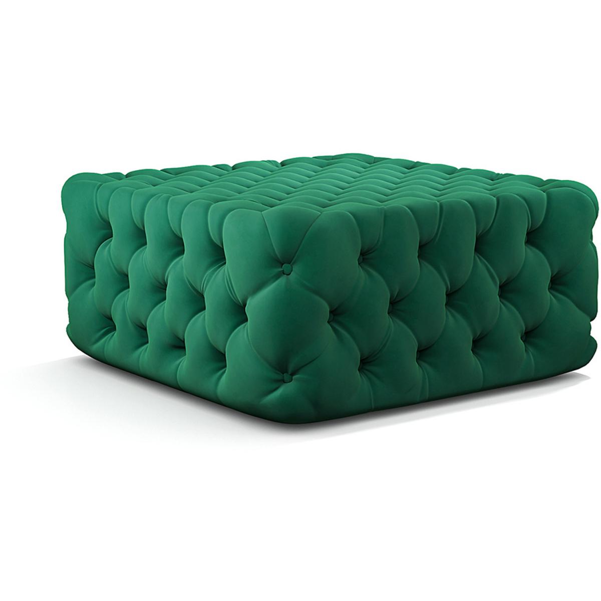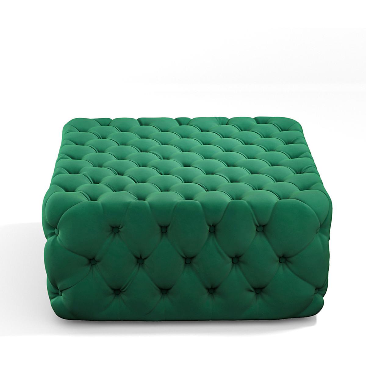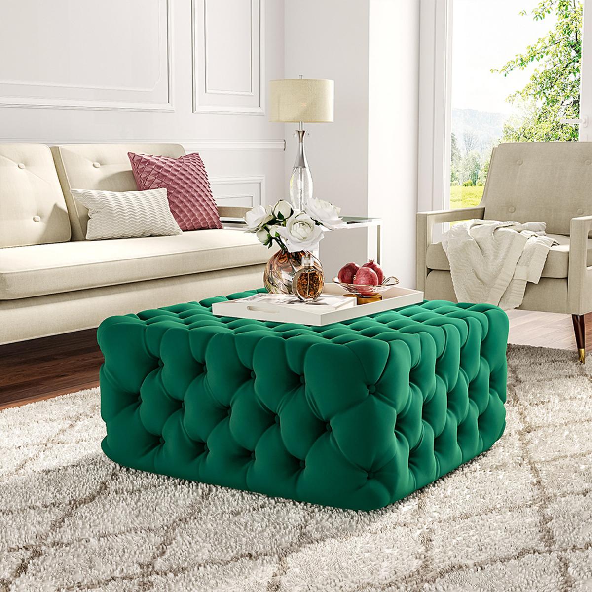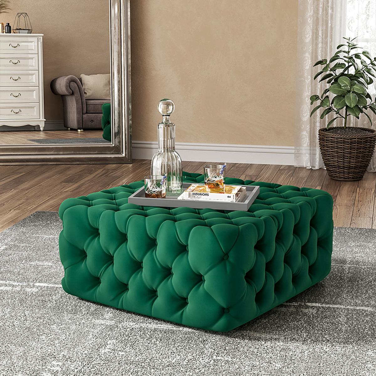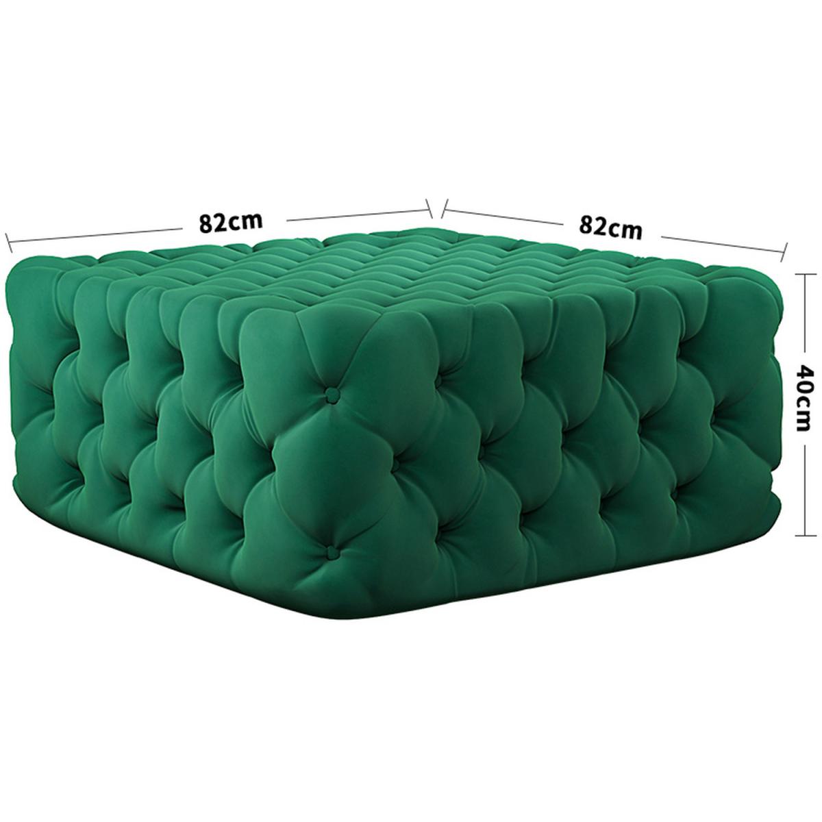 Deep Buttoned Square Velvet Footstool Coffee Table - Green / 15.3kg
