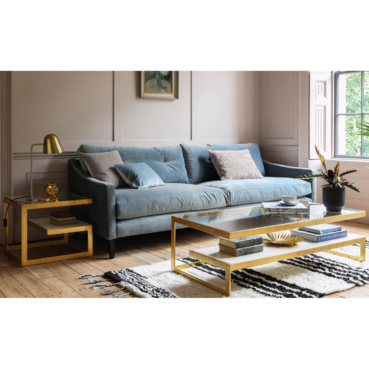 Designed by Jamie Graham, our Deep Dream collection combines modern styling with luxurious comfort. Featuring elegant cascading arms, button back detailing and mid-century style beech wood legs, this classic range will be treasured for years to come. Choose from a wide range of sumptuous fabrics to perfectly complement your interior space. Pictured: four seater sofa in Blue Savoy Stain Guarded Velvet. Handmade in 8-12 weeks and then delivered usually within 10 working days.