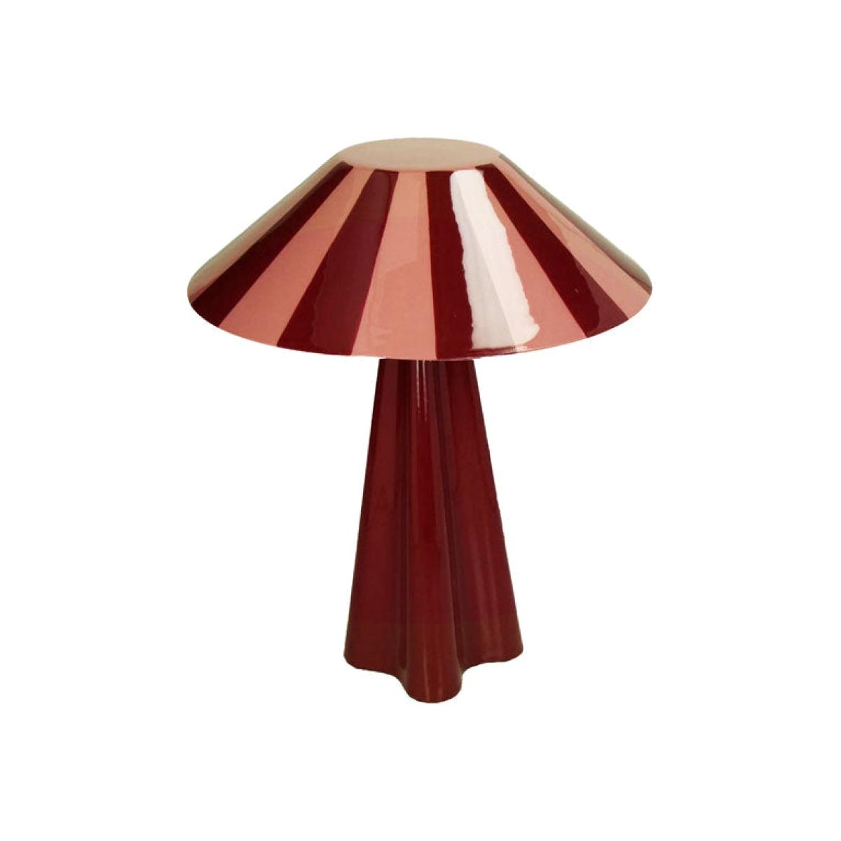 Say hello to the Deep Red Stripe Table Lamp – the little retro table light your side table didn’t know it needed. With its glossy, striped mushroom shape and bold, deep red tones, this desk lamp is giving major vintage party aesthetic energy. It’s quirky, cool and just the right amount of dramatic for your unusual home accessories. Pop this small table lamp on your bedside, desk, or wherever it needs a splash of fun and a whole lot of personality. - Deep Red Stripe Table Lamp - Measures: W24cm x H29cm x L24cm - Materials: Dolomite