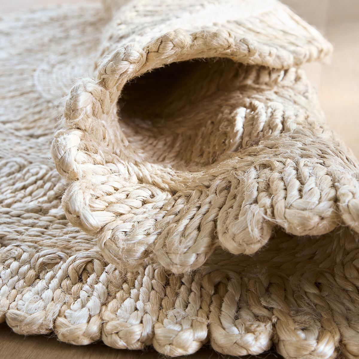 Entirely handmade, the Deepti rug is made up of braided strips, assembled and sewn together. Handmade with a thick tread depth. Product Details • 100% jute • Craftsmanship: braided, assembled and sewn by hand • Weight: 3580g/m² • Thickness: 2cm. Care Advice • Remove any stains immediately with a clean, damp cloth. Sizes • Diameter: 120cmDelivery:. Available for home delivery. • FIBRE FROM A WATER-SAVING CROP. Jute is a material that requires little irrigation and very few phytosanitary products. Dimensions and weight of parcel1 parcel • 122 x 16 x 16cm. 5kg.
