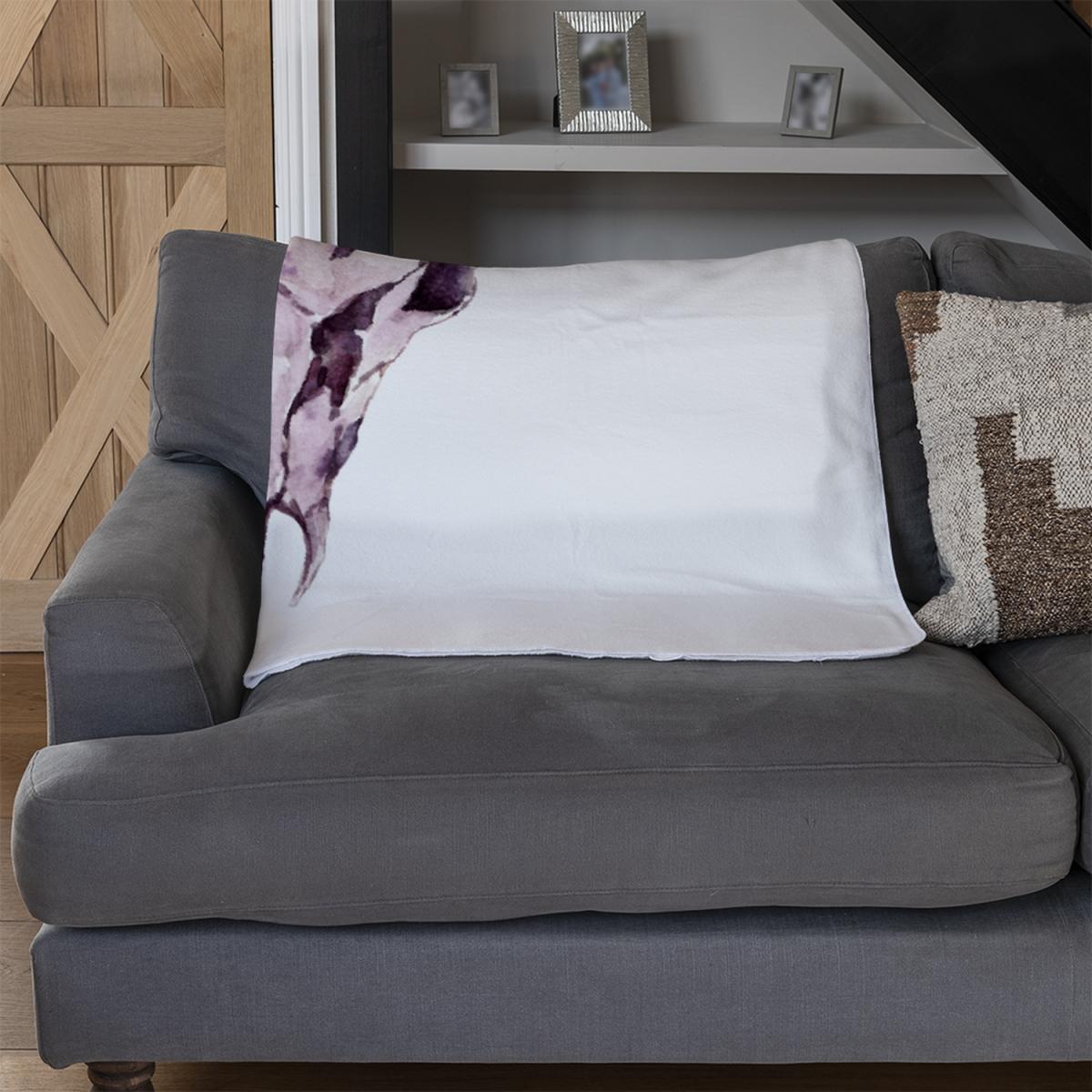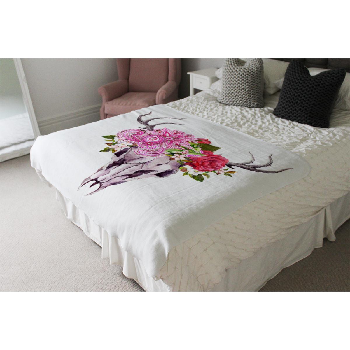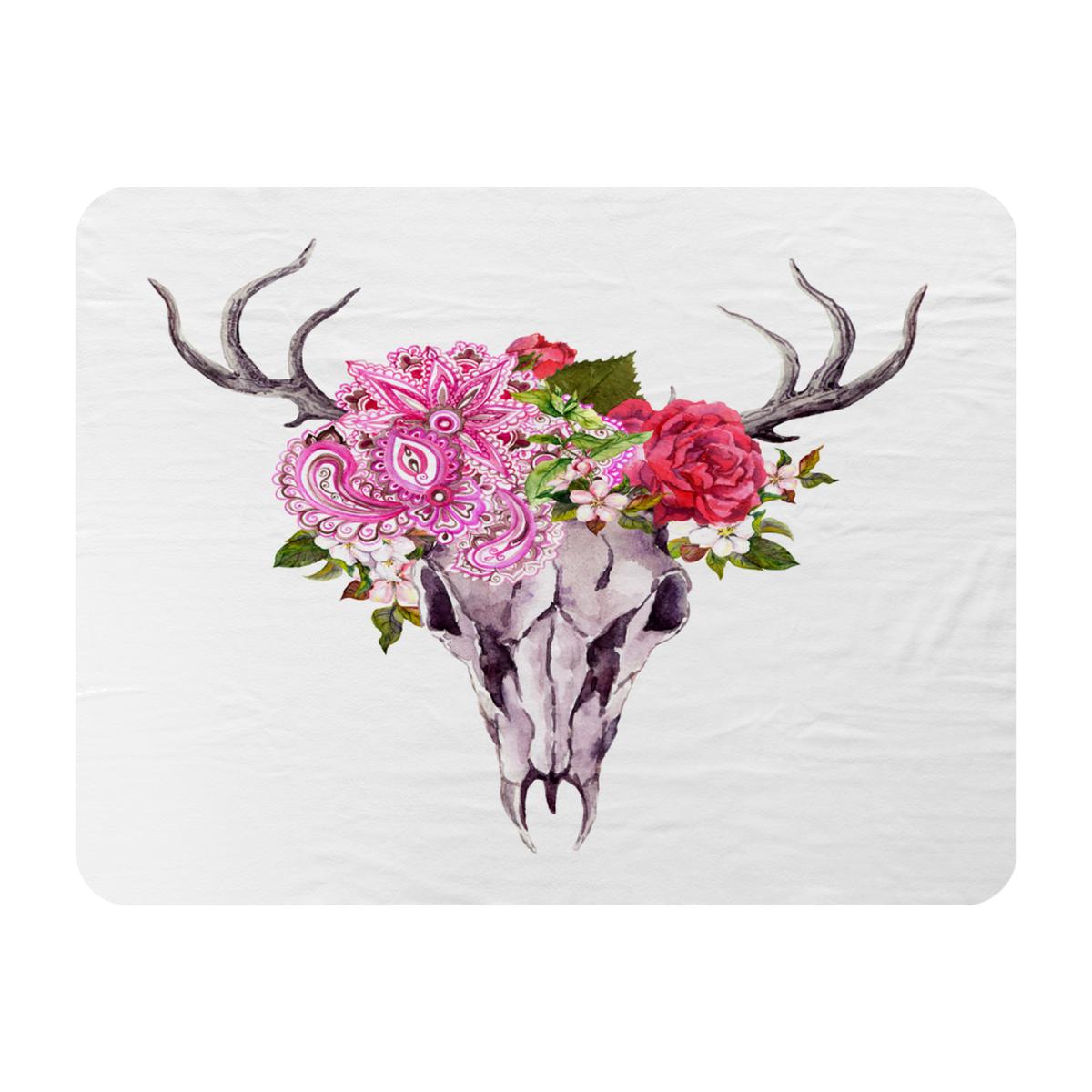 Deer Animal Skull With Flowers And Feathers Blanket - Pink