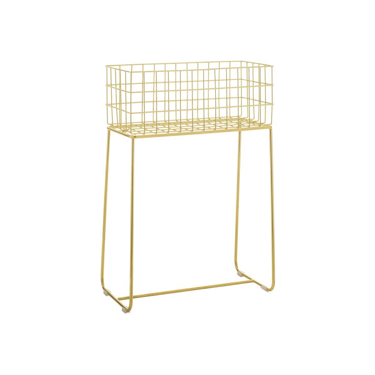 A chic and sophisticated golden metal basket on legs. You can use it to hold magazines and books, scarves in a hallway, beauty products in the bathroom, and more. You can also use it as a plant holder – fill the basket with flowerpots to create an original and modern area of greenery in a kitchen, lounge or hallway. Once filled with plants, the holder can become an atypical and decorative means of separating a room.