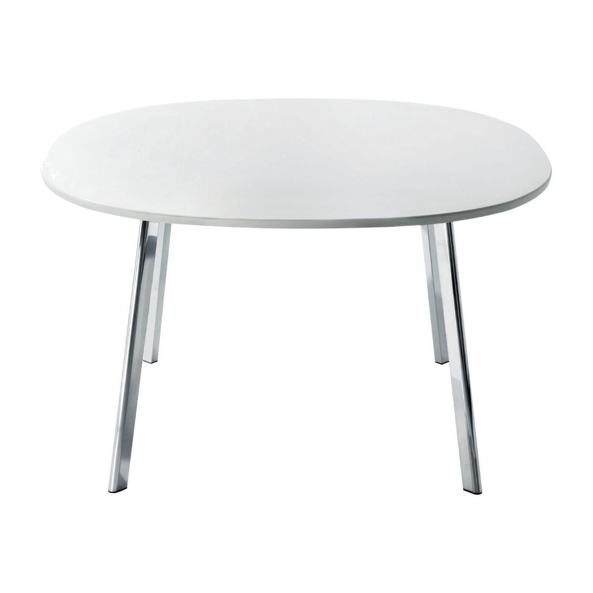 I really like this small dining table for its clean, modern aesthetic and versatility. Its straightforward white finish works well in minimalist or contemporary interiors, and it can be easily styled up with colourful or textured accessories for a more playful look. It's ideal for compact spaces, such as kitchens or breakfast nooks, where a neat yet functional piece is needed. For practical styling tips, team it with simple, stackable chairs for ease of storage, or add a statement centrepiece like a bowl of fruit or a small plant to create visual interest without clutter. Its compact size also makes it perfect for cosy corners or as an additional surface in multi-purpose rooms.