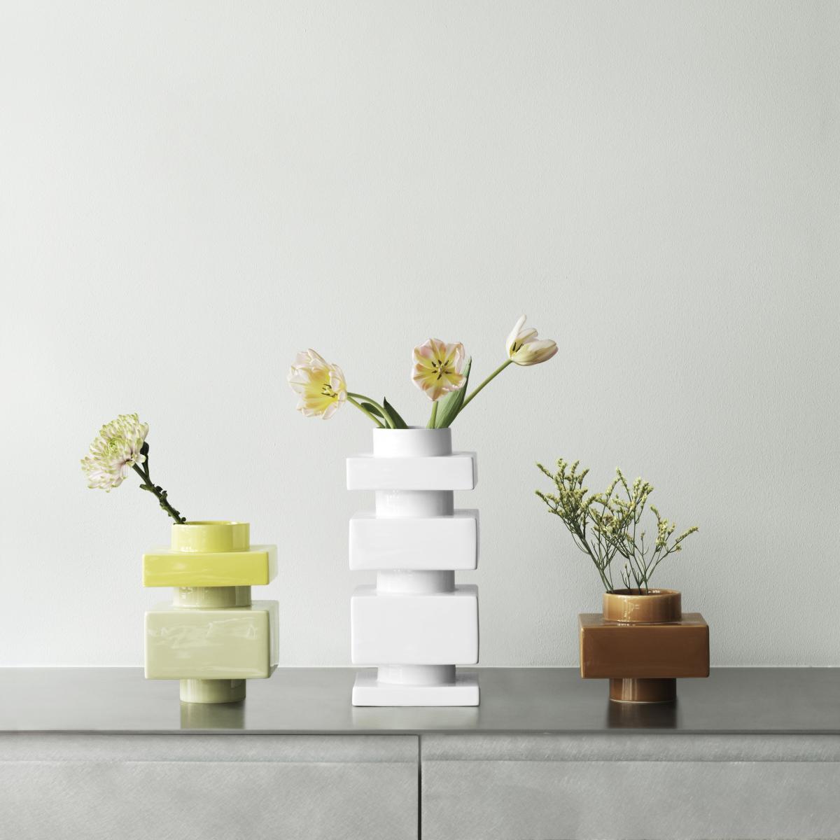 Delightful and bold, the Deko Object collection is made up of vases with complementary shapes and colours. The vases can be stacked on top of each other. The simple geometric shapes and on-trend tones come together to create wonderfully graphic compositions. These sculptural modular vases are designed to stimulate creativity and personal expression. You can transform Deko Object vases into boxes using the lid sold separately.