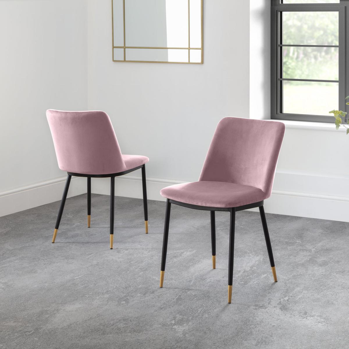 I love this set for introducing a soft, contemporary touch to a dining space. The pink upholstery adds a subtle pop of colour that works well in minimalist, Scandi-inspired, or even feminine interiors. They’re versatile enough to pair with neutral tones, like grey or white, or to be mixed with richer hues for a bolder look. Practical styling tips include pairing them with a wooden or glass table to enhance their sleekness or adding layered textiles, like woven placemats or patterned cushions, for added comfort and visual interest. These chairs are equally suitable for casual breakfast nooks or more formal dining rooms, making them a versatile choice for various interiors.