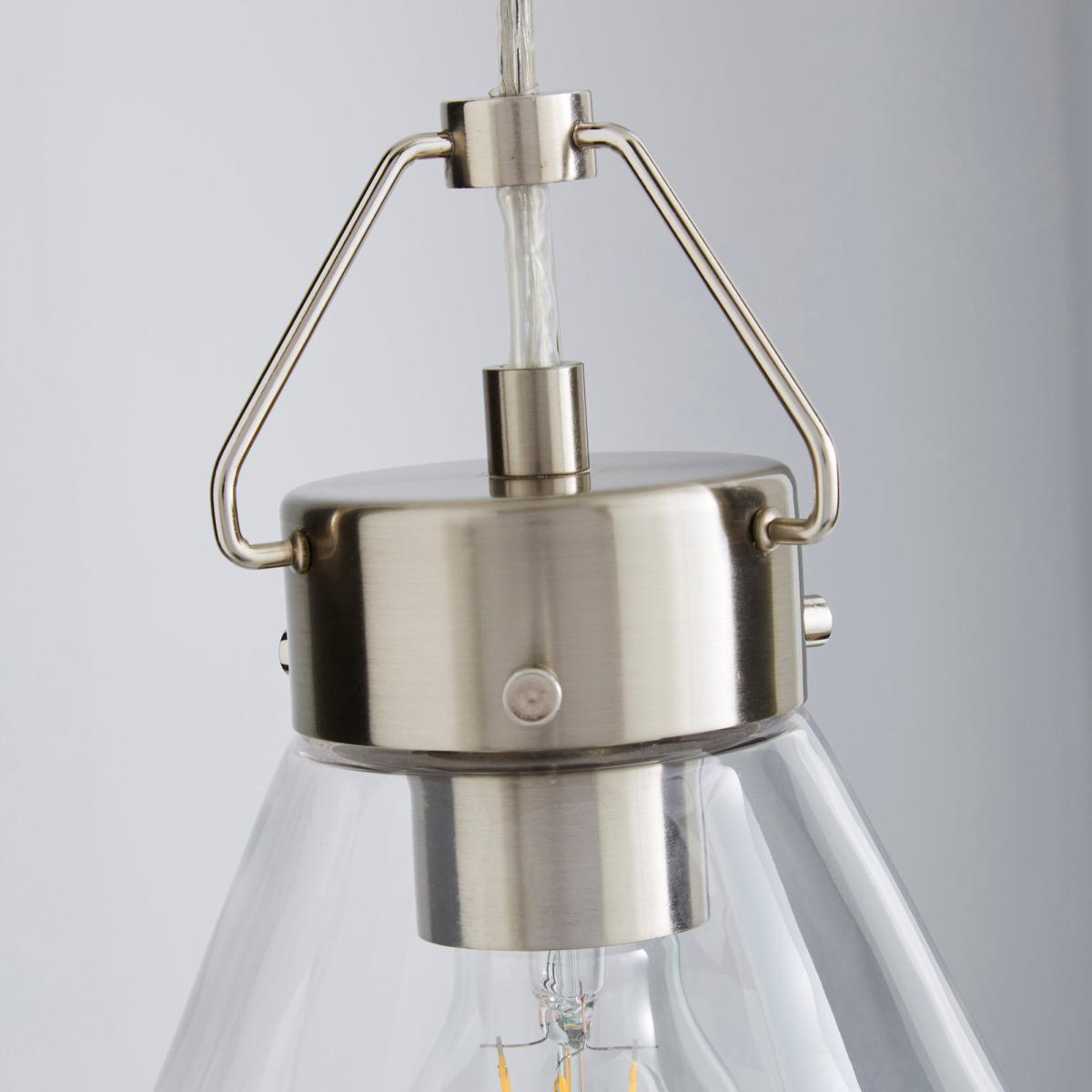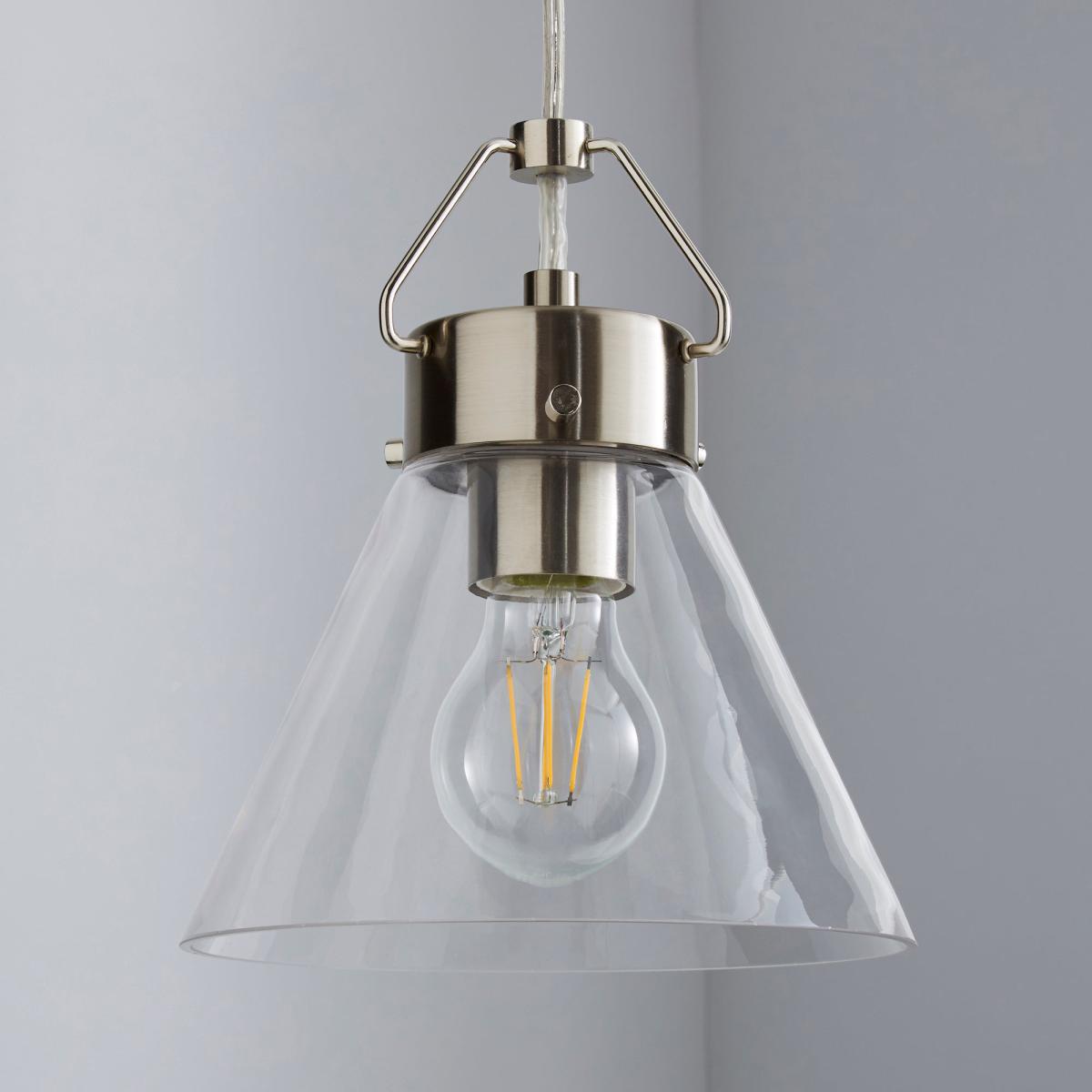 The Delavin Pendant features a satin nickel finish as well as an tapered glass shade. This lamp is also adjustable, dimmable and features a strong and durable steel construction. Click. Here. To purchase the recommended bulb. This light comes with a 2 year guarantee. Click. Here. To view our Terms & Conditions.